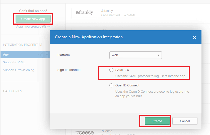 - Under the Application Type section, select SAML Application and click Configure.