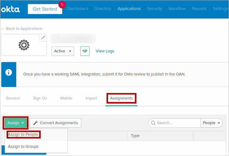 - Go to the Users tab and assign the applications to users or groups.