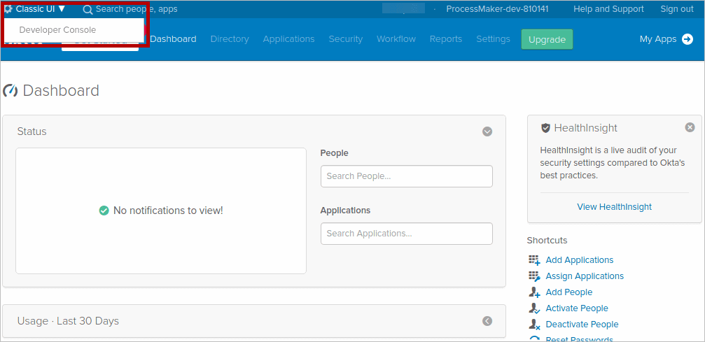 - Log in to the OneLogin portal with admin credentials.