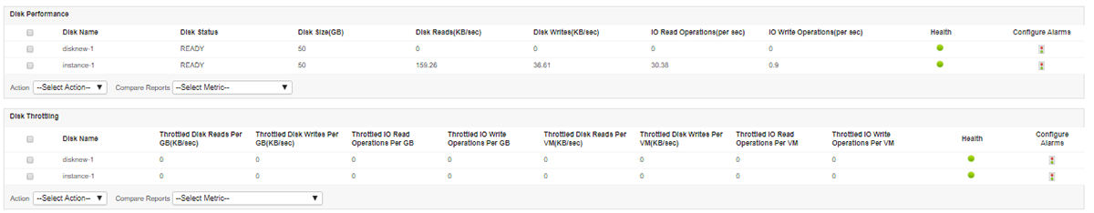 Extended periods of high disk utilization can degrade the performance of other applications hosted in the same instance. To determine if the cause of friction in your application is due to a disk bottleneck, track the amount of data written/read to the disk with Applications Manager's Google Compute monitoring software. Scaling the volume of disk utilization will help you remedy prolonged periods of I/O throttling requests.