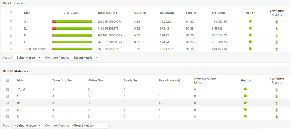 The disk utilization metrics gives an idea regarding the amount of memory being used and the free memory in each partitioned space of your server's memory. With Applications Manager's Microsoft Aure performance monitoring solution, you can track the memory usage metrics within the disk to improve the overall performances of your virtual machines, provided the details are put to use in proper capacity planning.