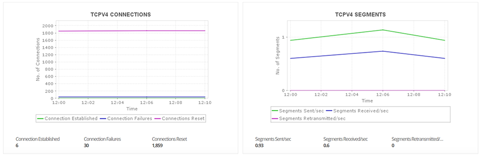 With Applications Manager's Microsoft Azure performance monitoring tool, view elaborate graphs, along with information about the activities of the network interface. From connections established, connections failed to segments sent and segments received, all at a glance.