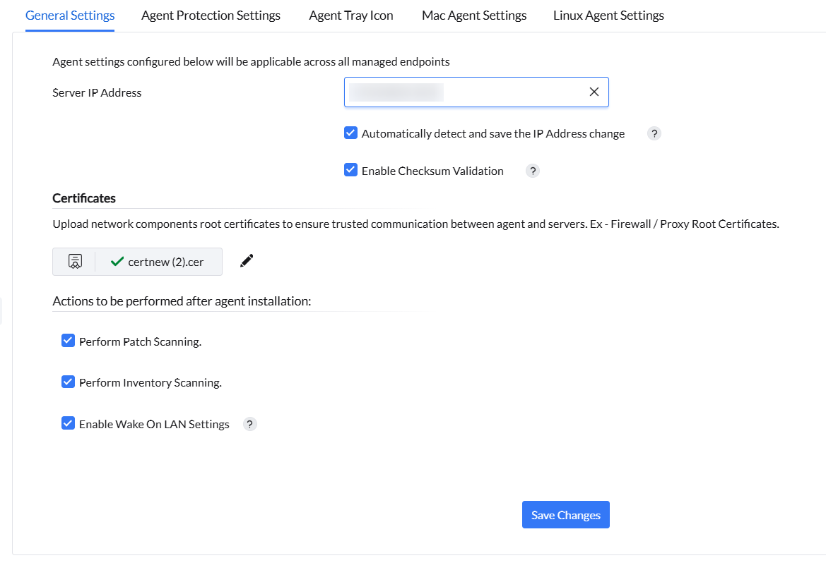 Under General Settings, you can add your central server's IP address. In addition, you can allow your agents to detect automatically and save the updated IP address of the server.