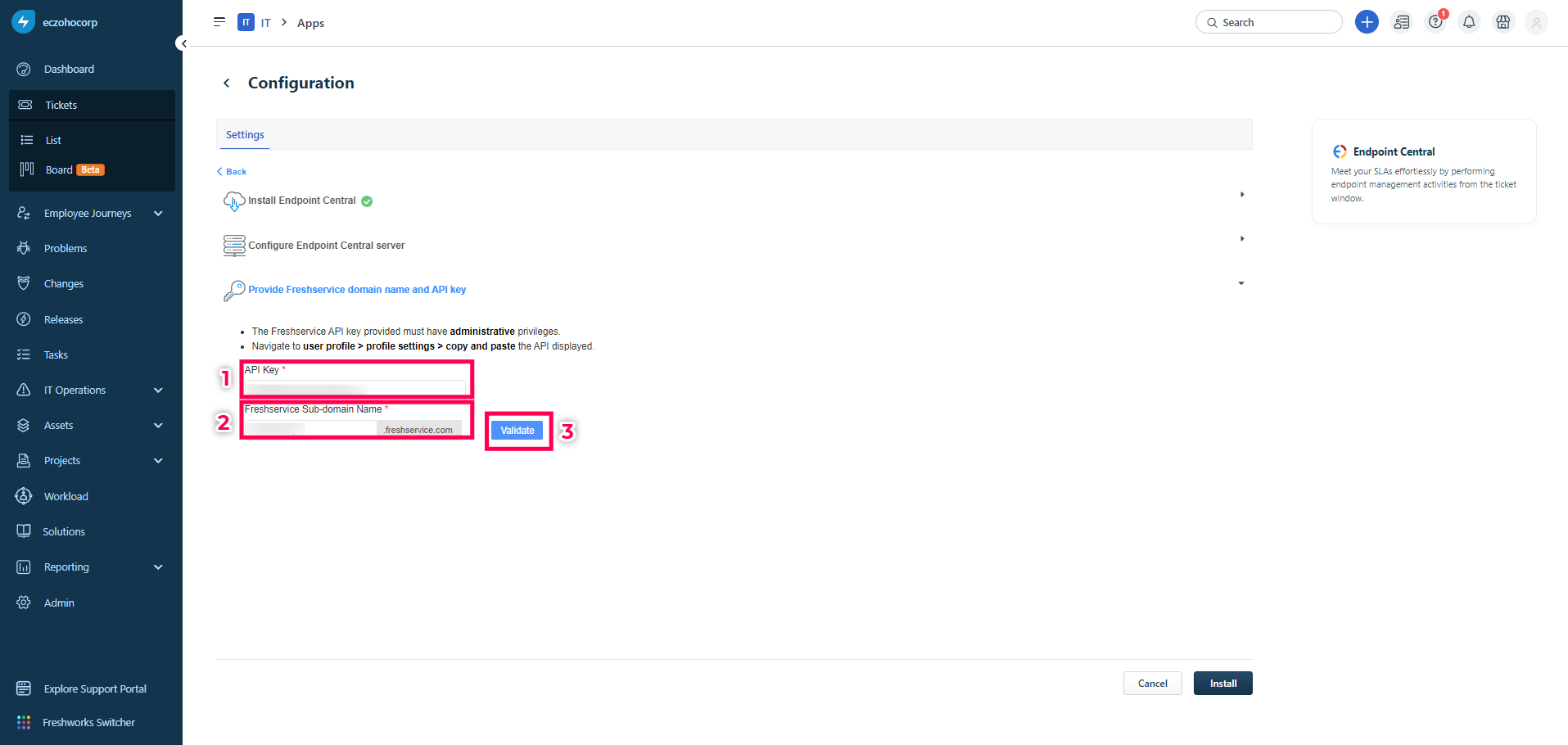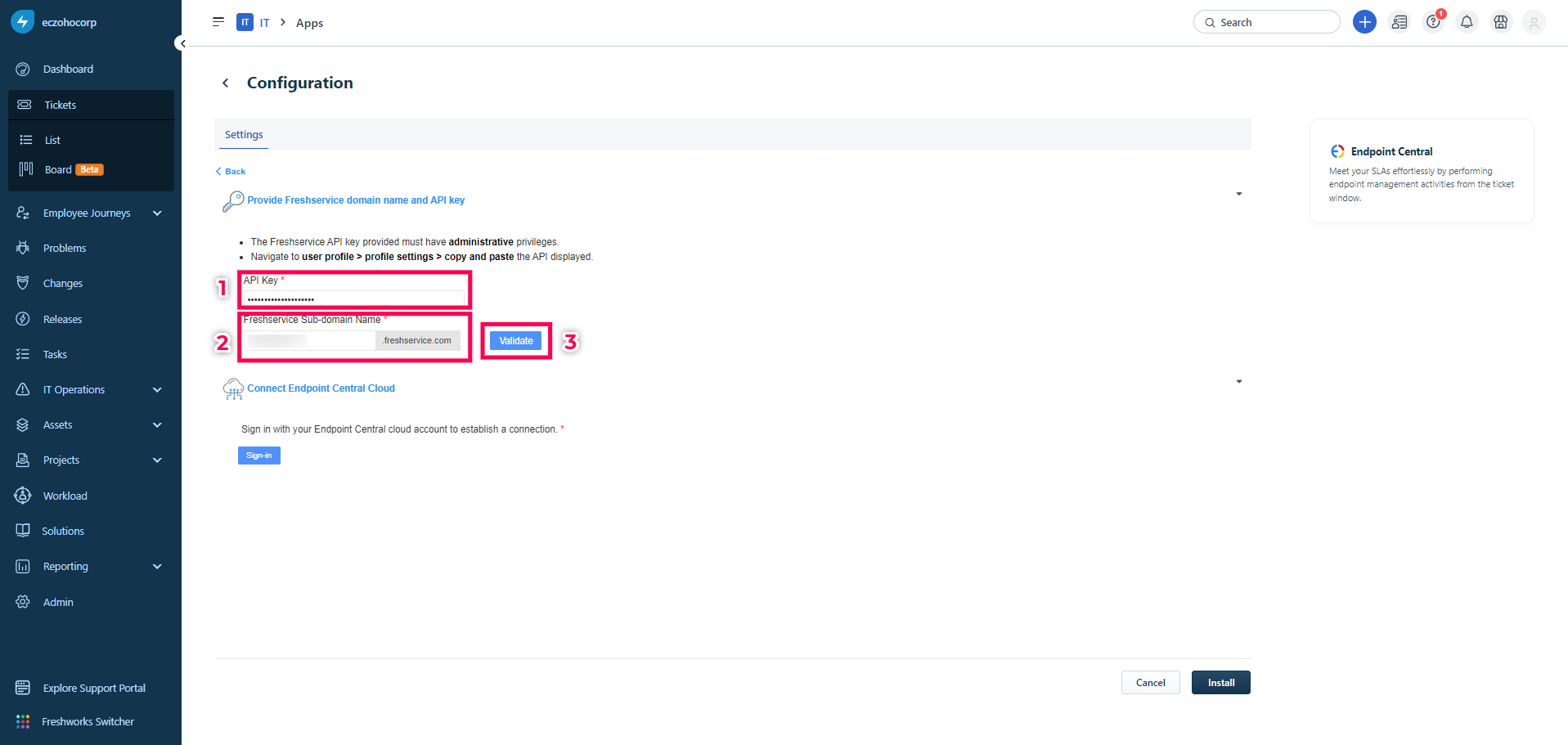 Integrate Endpoint Central with Freshservice