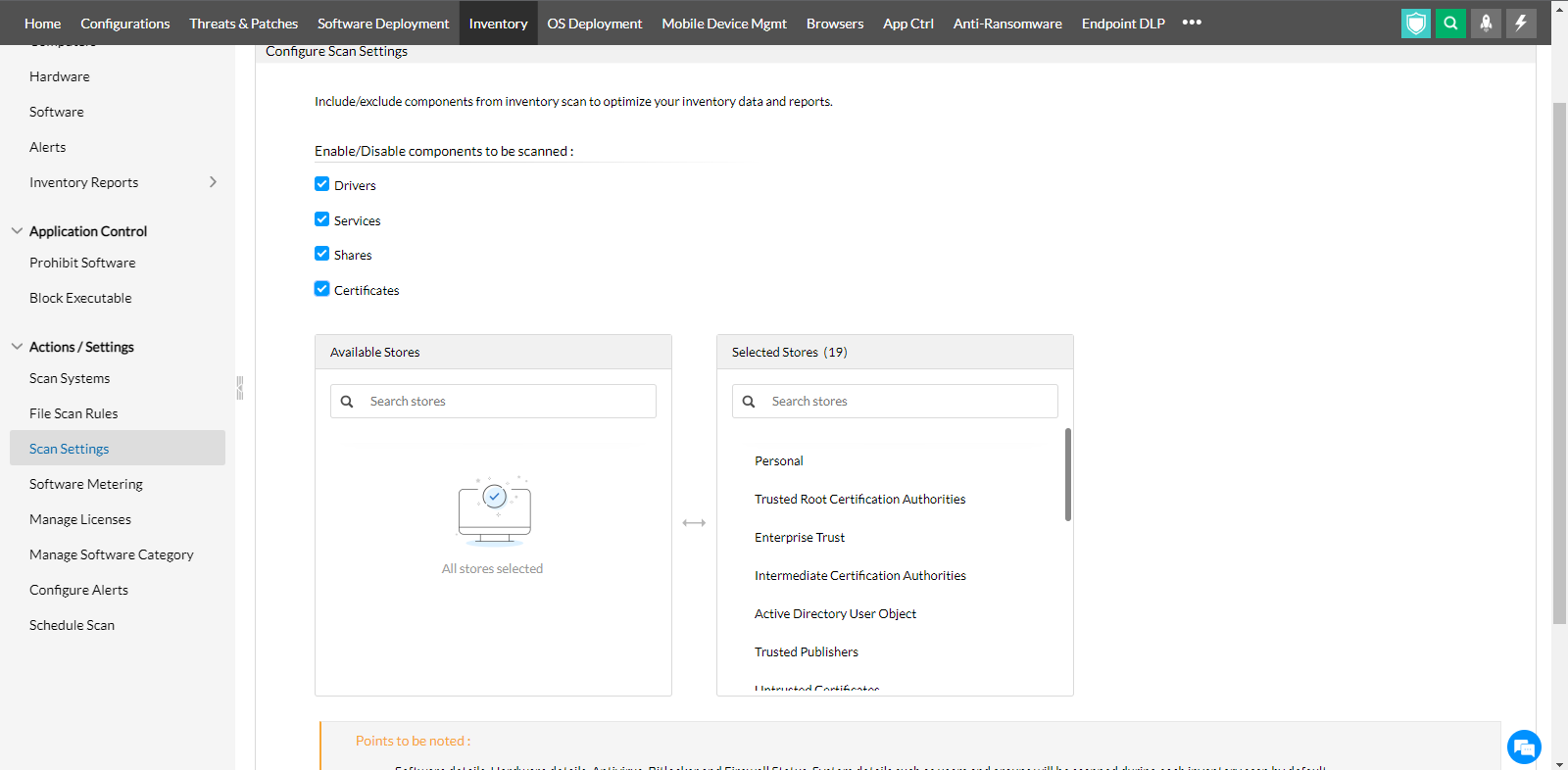 Asset Scan Settings is a set of per-defined customizations which can be modified and personalized according to technicians needs and streamline their IT Asset Management process. This configuration primarily focuses on personalizing the inventory scanning process. In addition to the basic asset scan rules, IT administrators can enable scan for the following components: