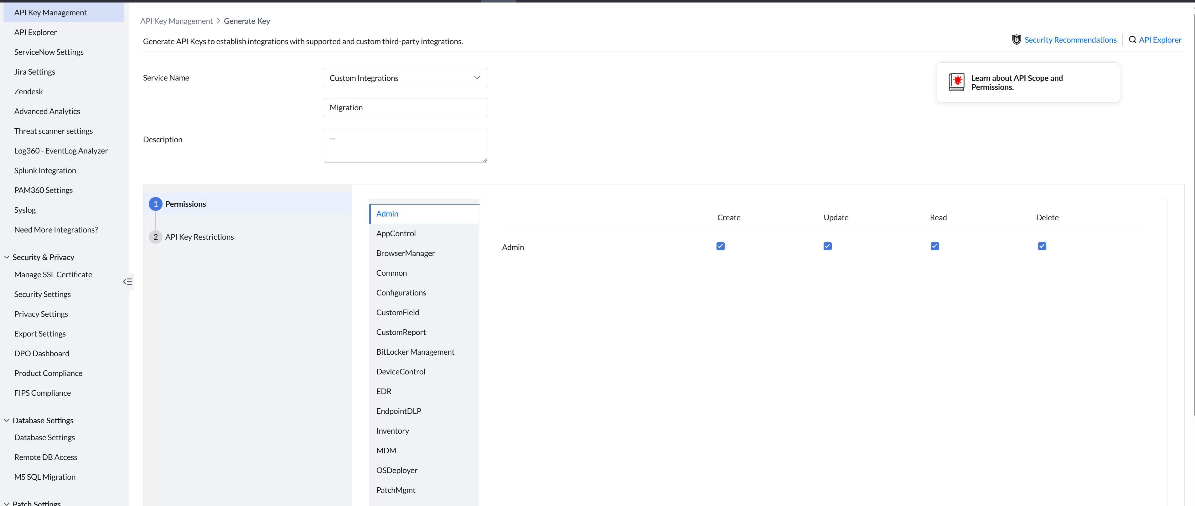 • Navigate to Admin > Integrations > API Key Management