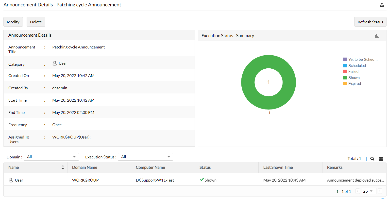 Announcements can be deployed to large numbers of users or computers. It's important to track execution status and delivery.