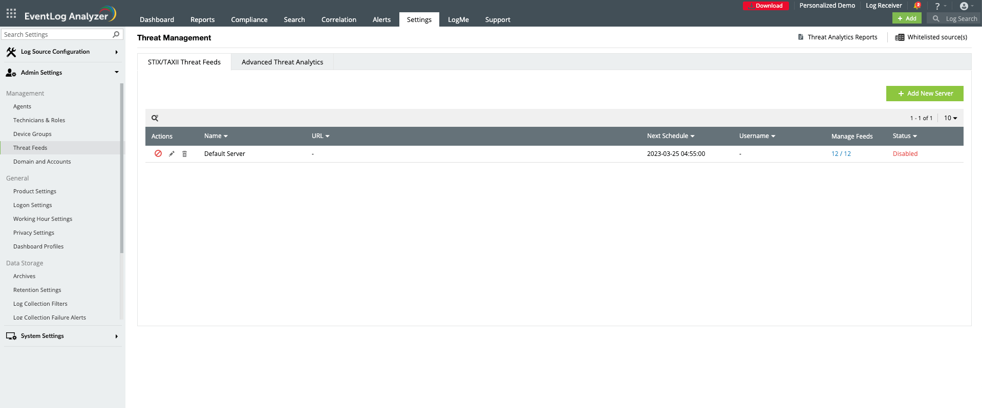 • Click the Whitelist Source option. (top right corner of Threat Feeds page).