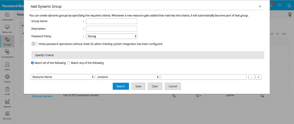 - Click the "Actions" icon against the resource group and select "Periodic Password Reset" from the drop down.