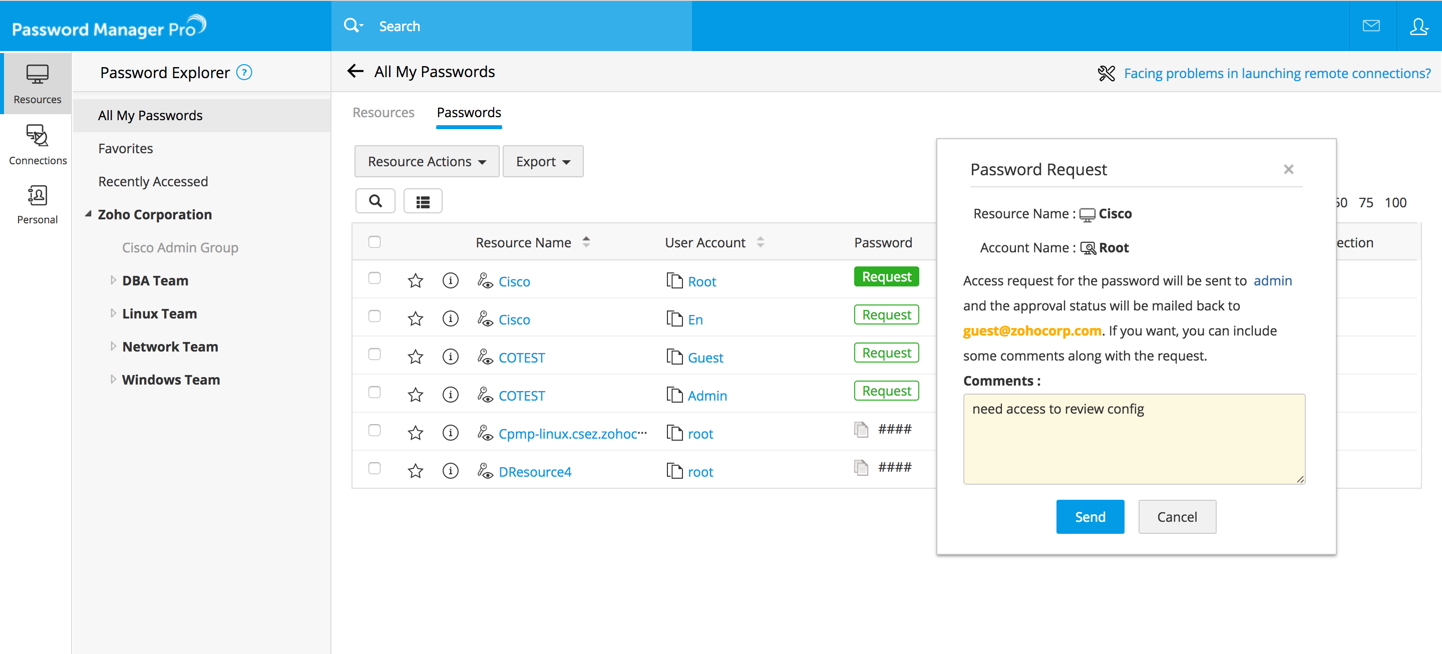 - Launch one-click connections to shared resources from Password Manager Pro's web-interface, without manually entering credentials.