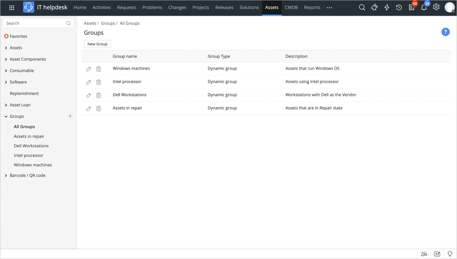 Furthermore, assets can be grouped (Fig. 9) based on specific properties, offering a quick peek into specific groups of assets, such as those running an outdated OS. You can employ static groups, where assets are manually selected for a specific group, or dynamic groups, where criteria are set to automatically group assets, aligning with the organization's specific requirements. For instance, assets can be categorized by department, location, or business unit. These groupings are beneficial when coordinating activities, such as implementing vulnerability patches, are required across a set of assets.