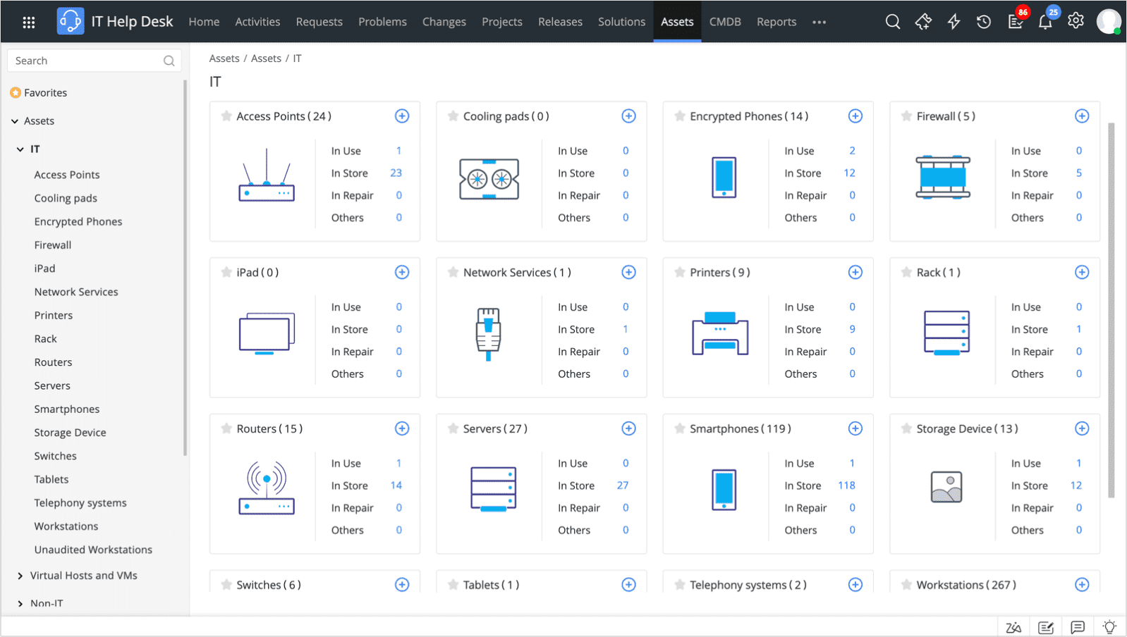 ServiceDesk Plus facilitates the classification of assets within a single database by categorizing them into IT assets and non-IT assets (Fig. 8).