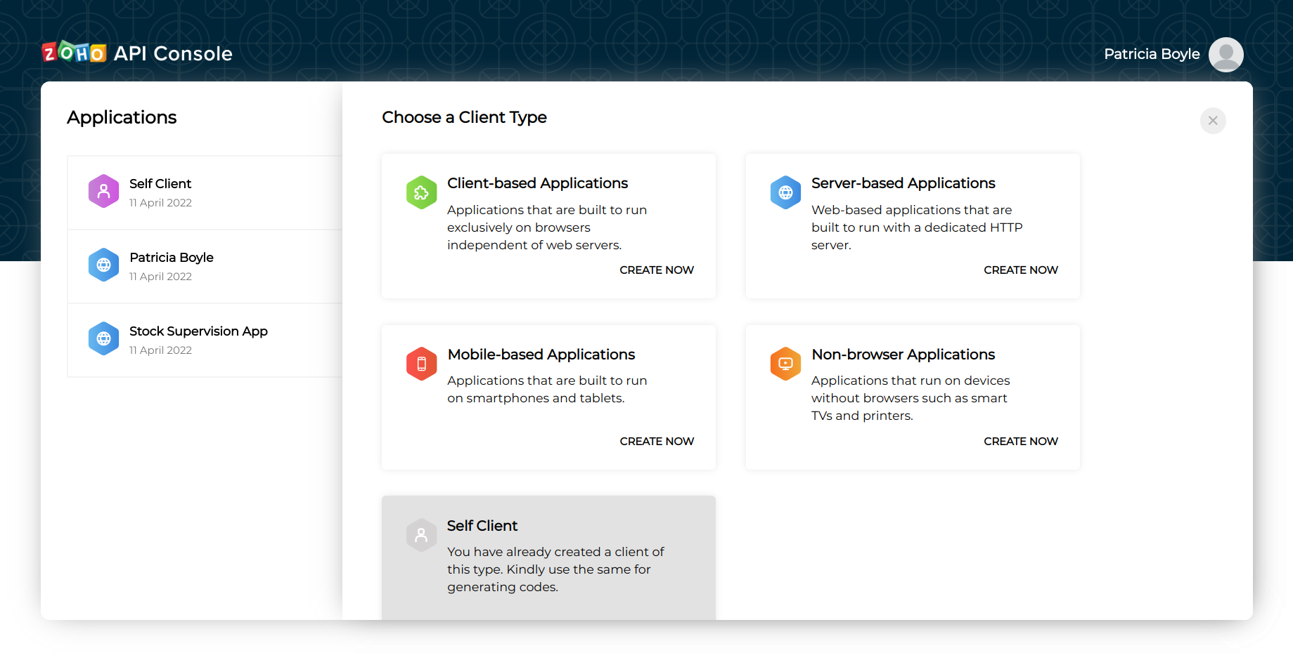Access https://www.zoho.com/accounts/protocol/oauth.html for getting an overview on OAuth and Application Registration.
