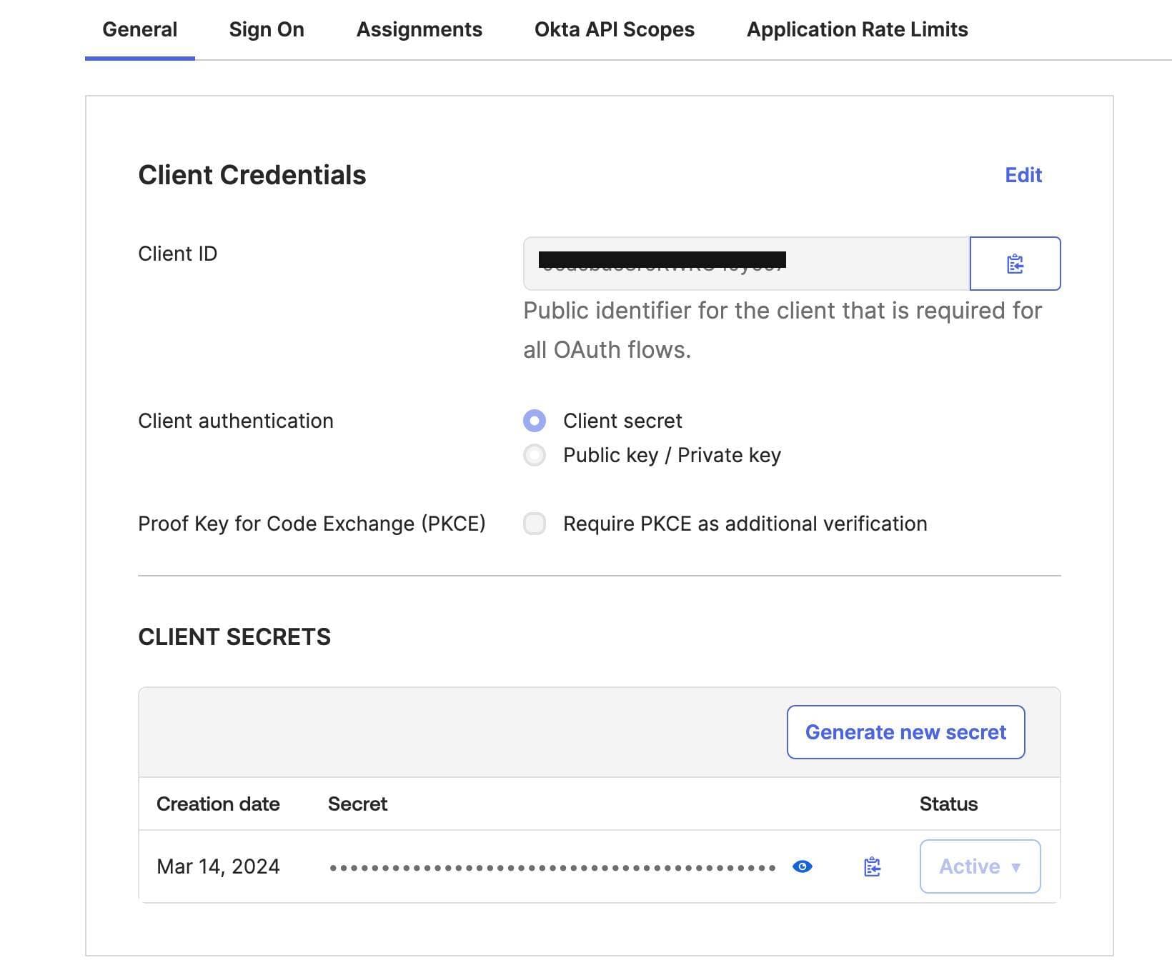 - Get the client ID and client secret from the General tab, and use them for integration with SaaS Manager Plus