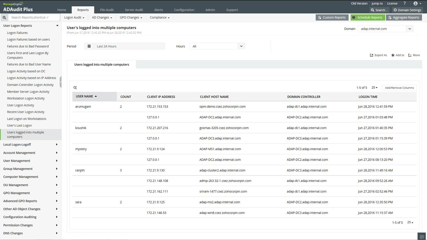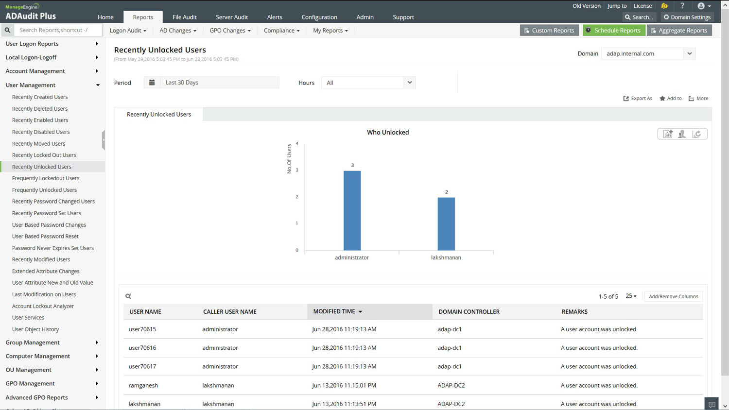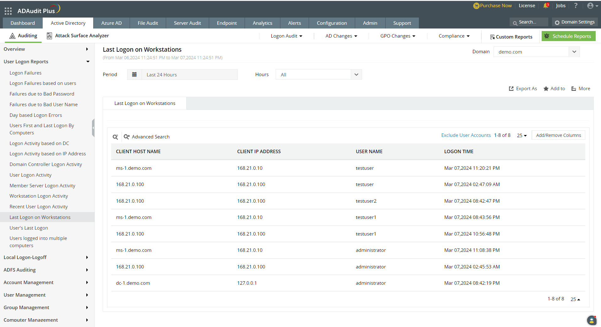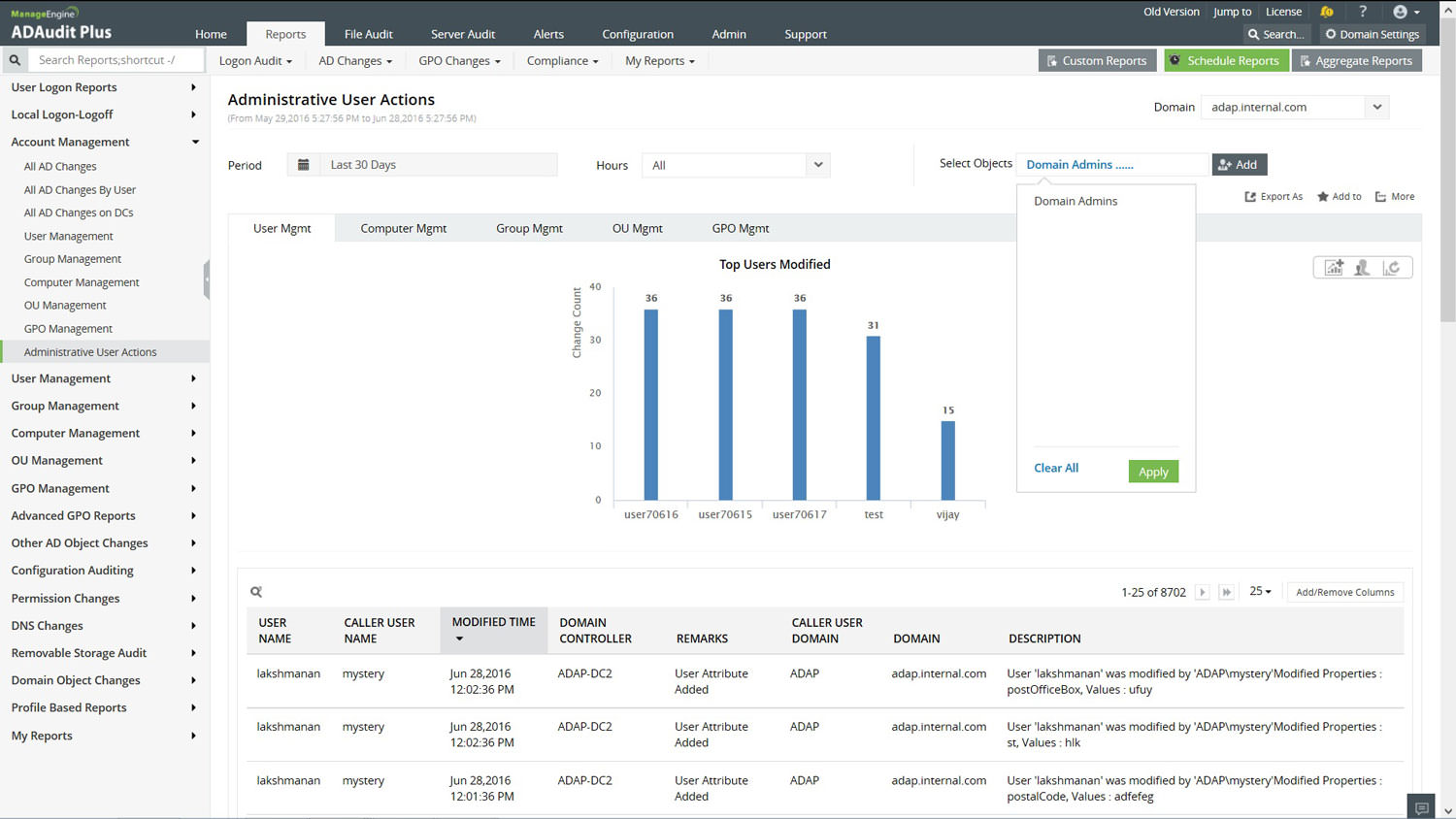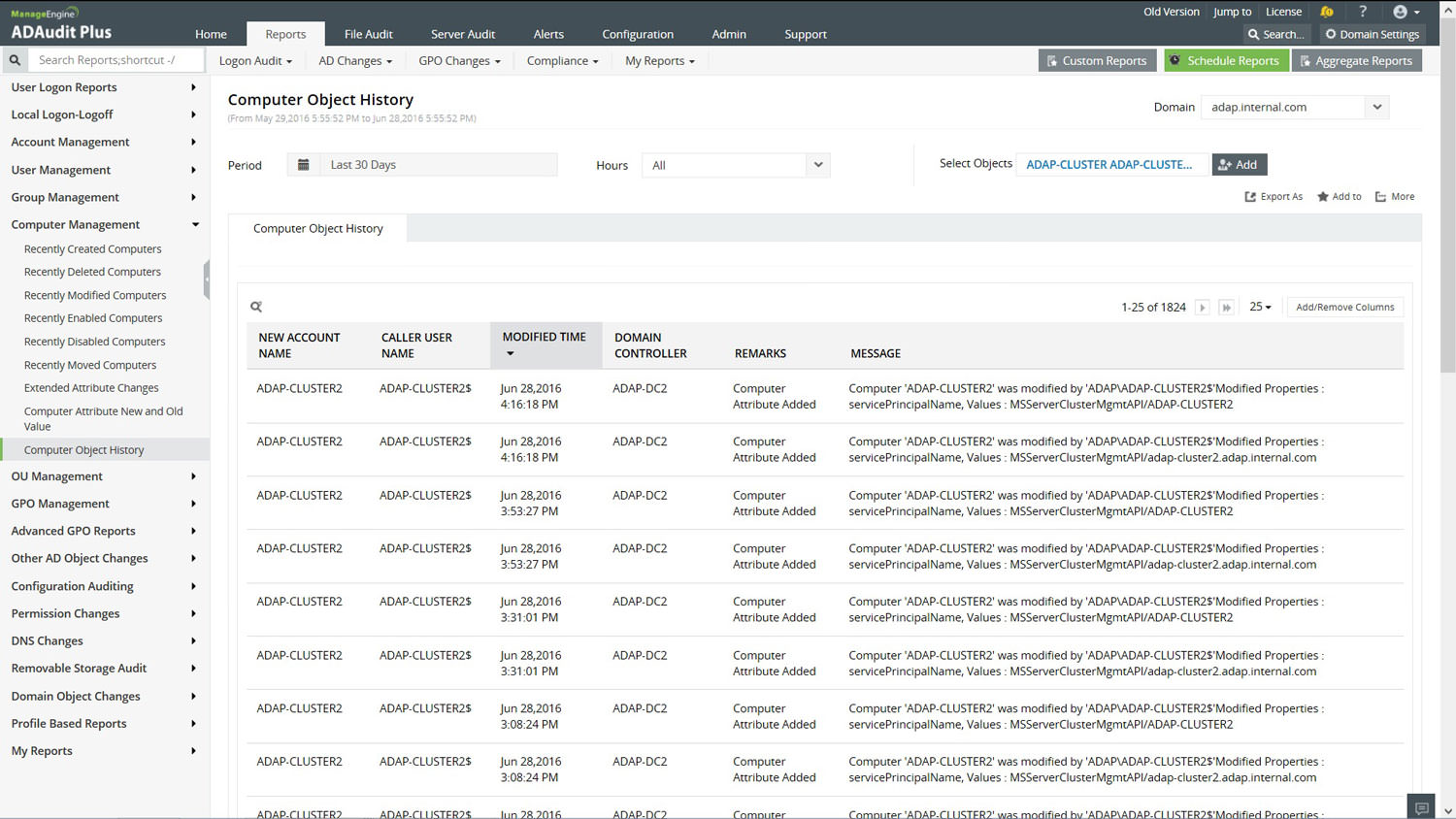 Monitora e segnala ogni modifica apportata a una moltitudine di oggetti AD, tra cui utenti, gruppi, unità organizzative, computer, oggetti Criteri di gruppo, siti, ruoli FSMO e altro ancora.