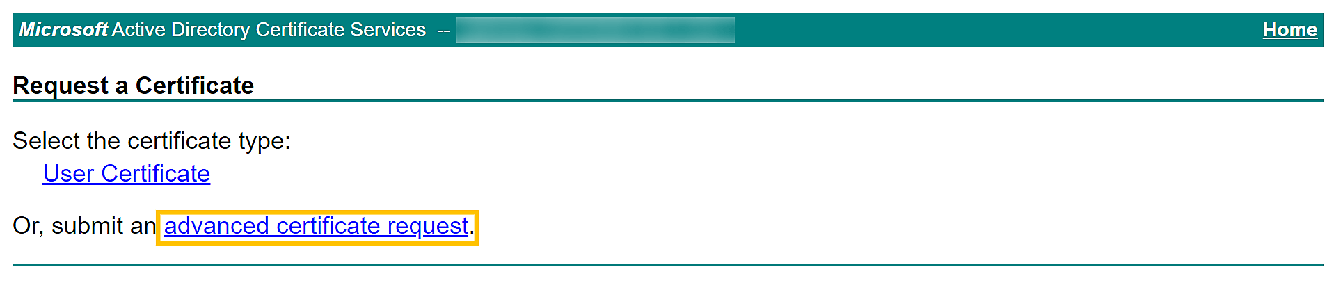- Nella pagina Richiedi un certificato, fai clic sul link Richiesta avanzata di certificato.
