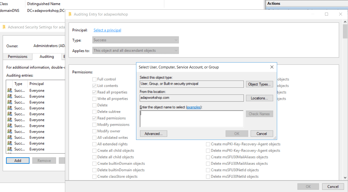 Fai clic su "Seleziona un'entità". Questo farà apparire la finestra "Seleziona utente, computer o gruppo". Digita "Tutti" nella casella di testo e verifica con "Controlla nomi".