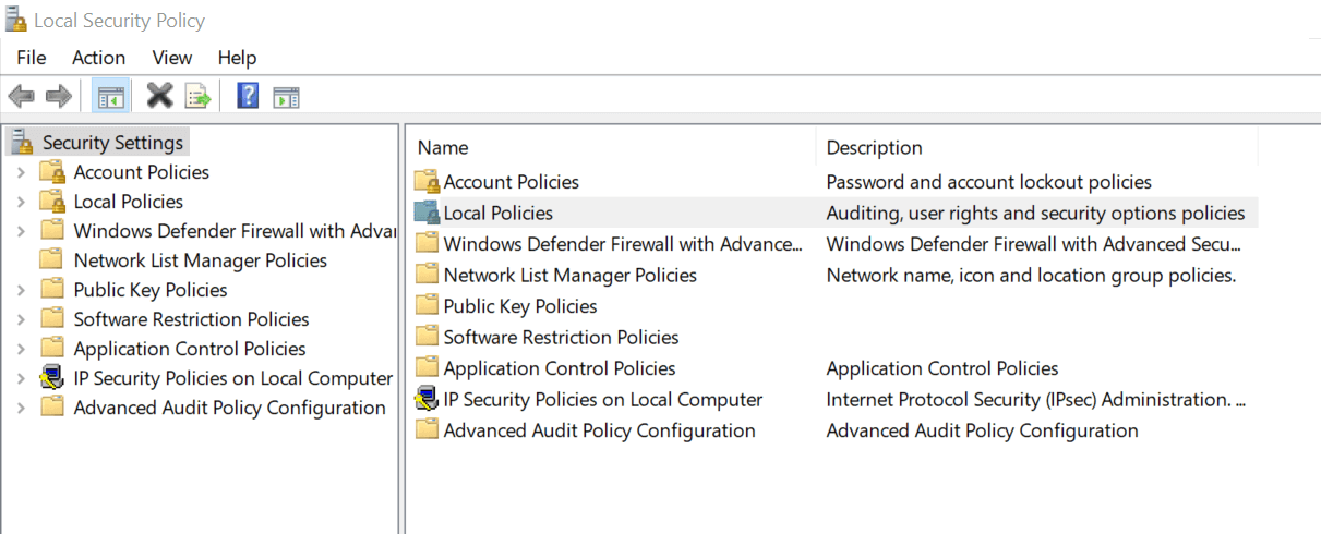 Apri Local Security Policy. Passa a Impostazioni sicurezza e seleziona Criteri locali.
