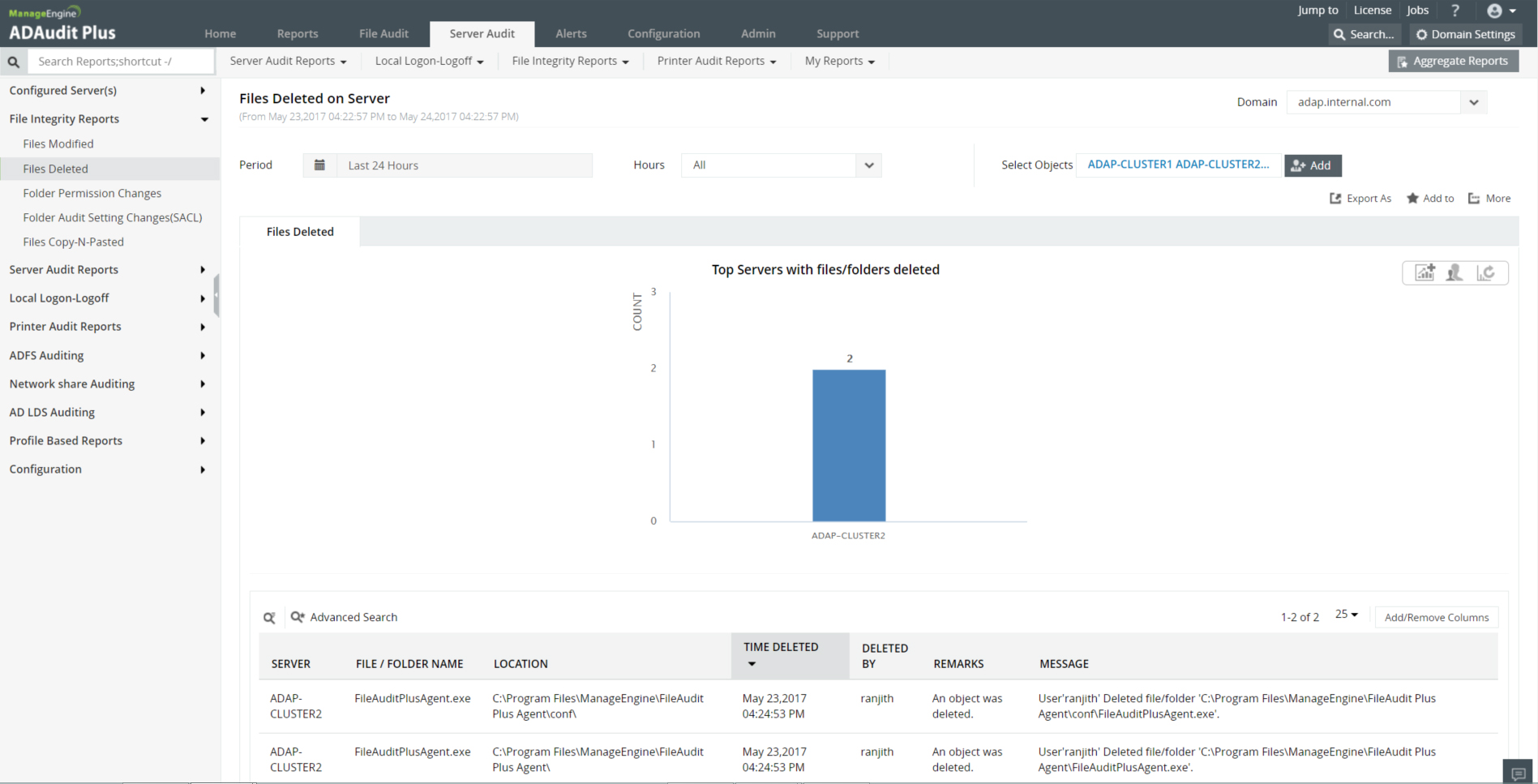 Grazie a questo report tieni traccia dei file di configurazione e sistema eliminati, scopri quando ogni file è stato eliminato, da chi e quando.