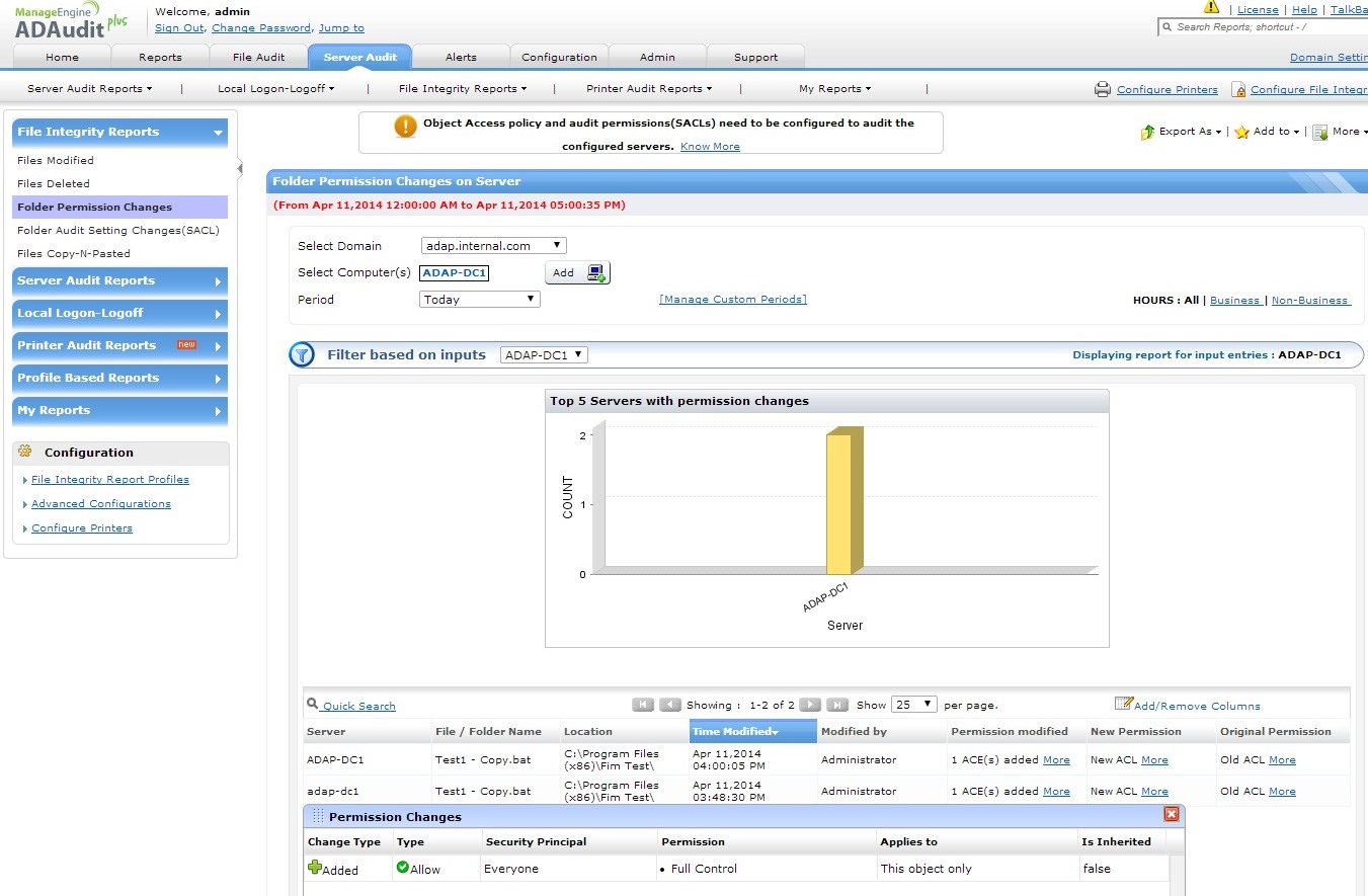 Report sui cambiamenti alle autorizzazioni critiche che monitora ogni cartella per assicurarsi che la sua funzione di controllo non venga cambiata senza autorizzazione.