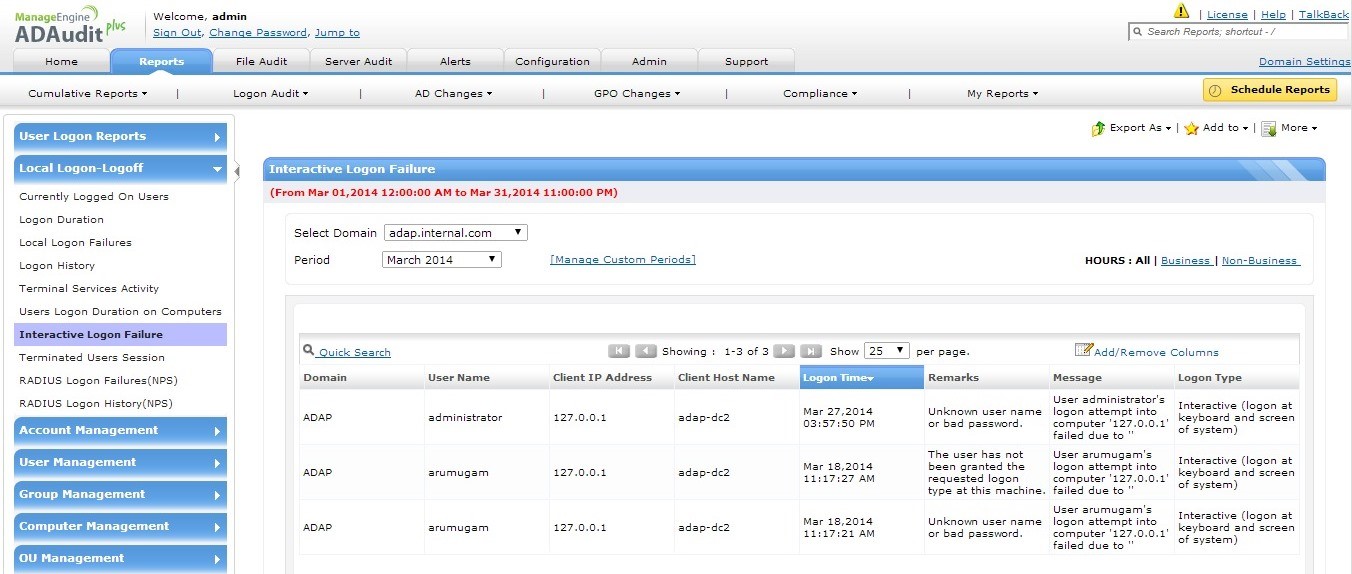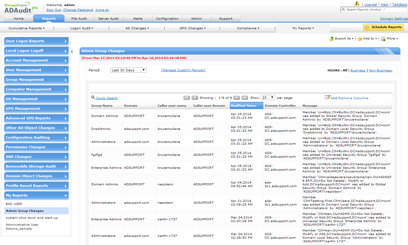 ADAudit Plus offre funzionalità come il controllo delle modifiche, il monitoraggio degli accessi, il monitoraggio dei file, la creazione di report di conformità, l'analisi della superficie di attacco, l'automazione delle risposte e il backup e il ripristino per diversi sistemi IT.