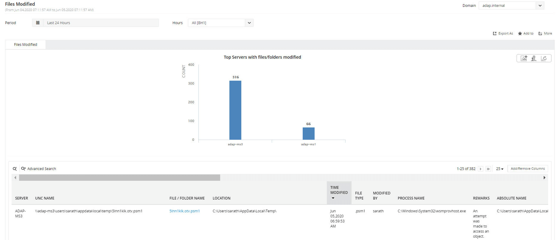 ADAudit Plus offre funzionalità come il controllo delle modifiche, il monitoraggio degli accessi, il monitoraggio dei file, la creazione di report di conformità, l'analisi della superficie di attacco, l'automazione delle risposte e il backup e il ripristino per diversi sistemi IT.