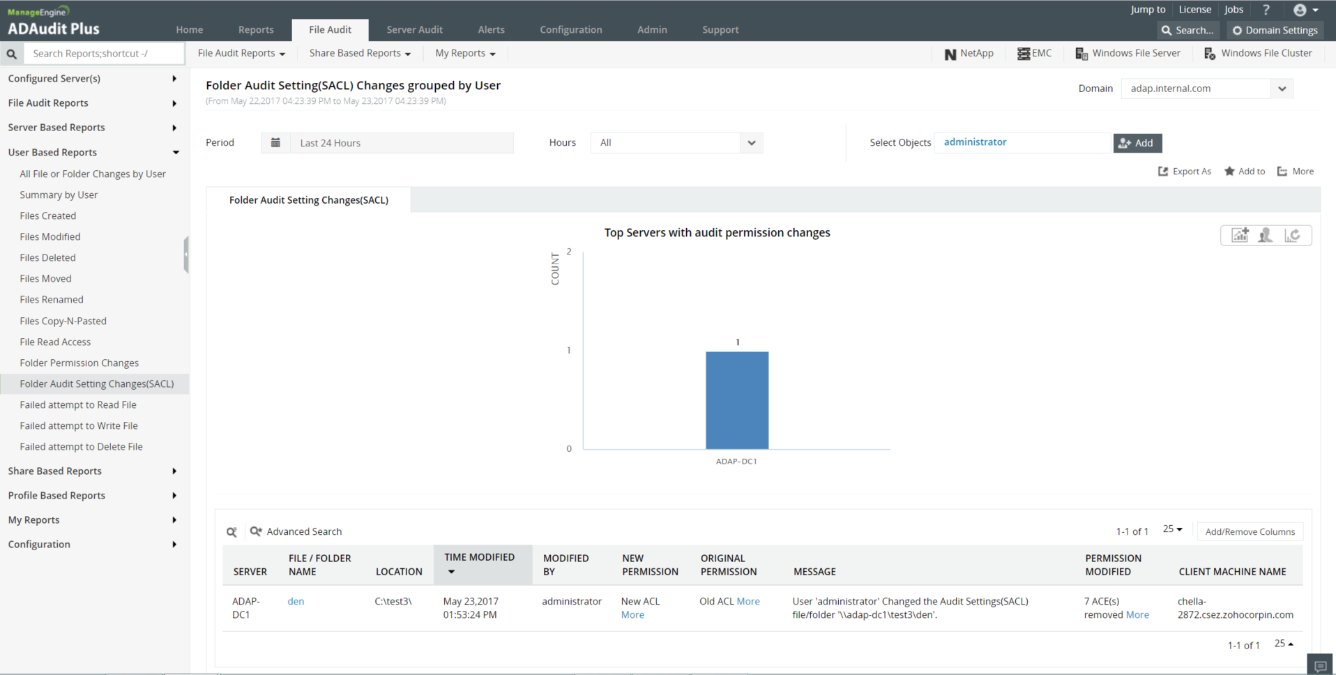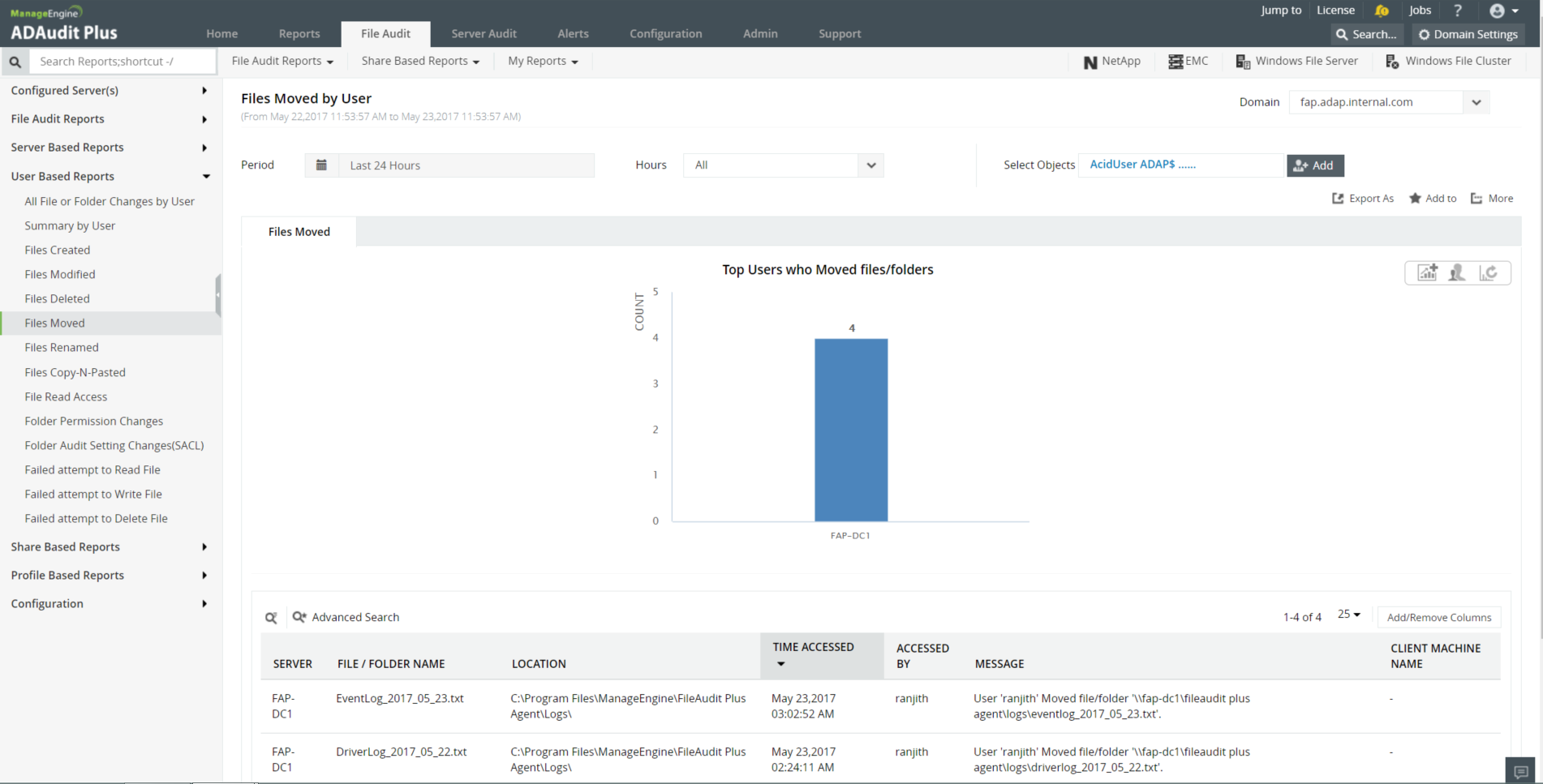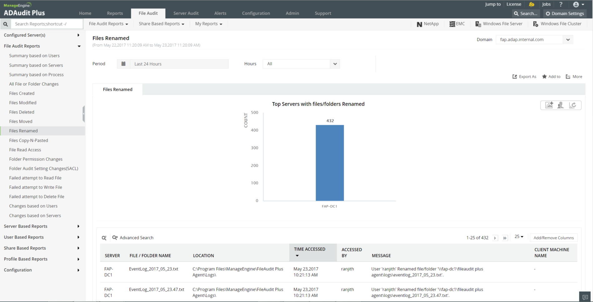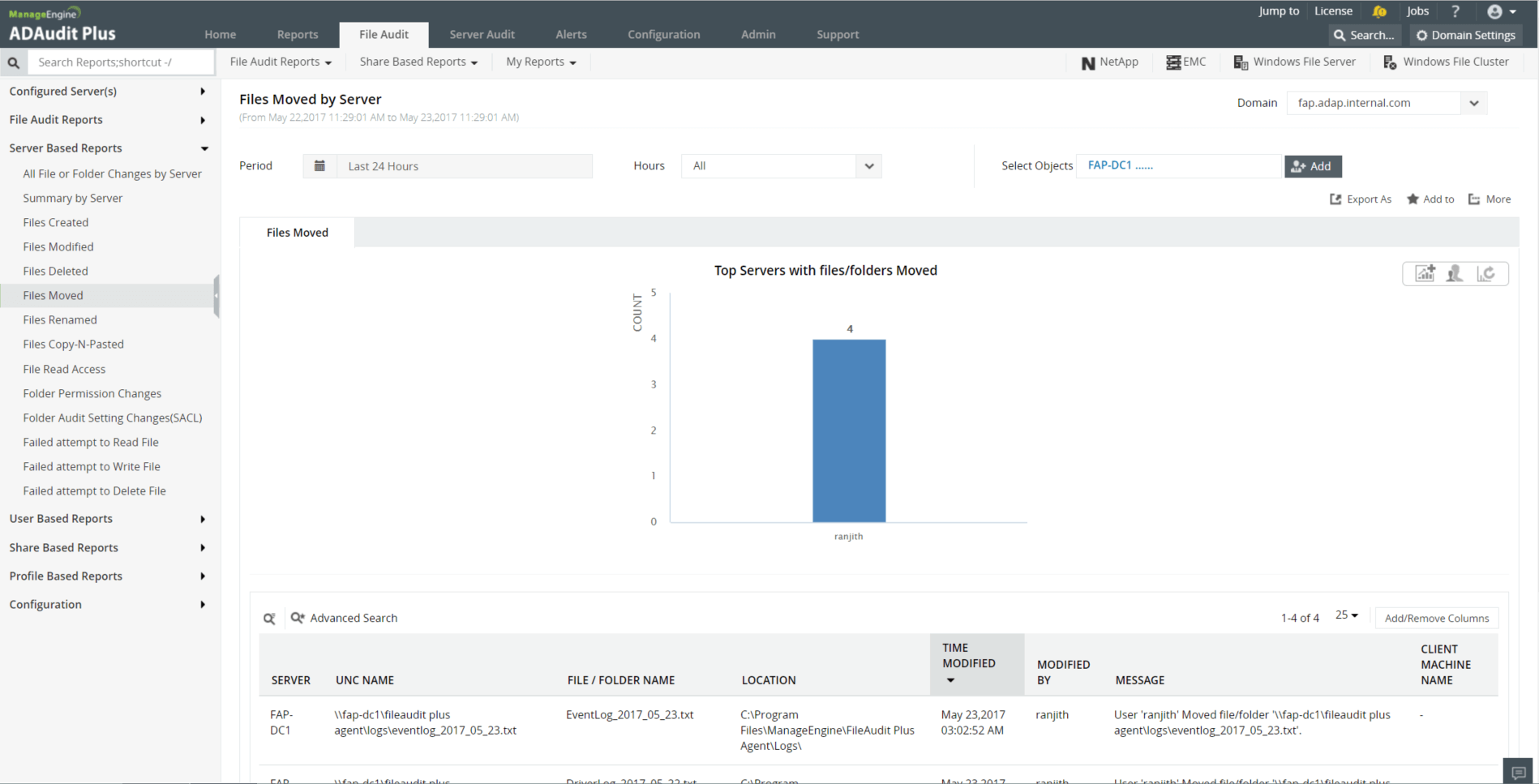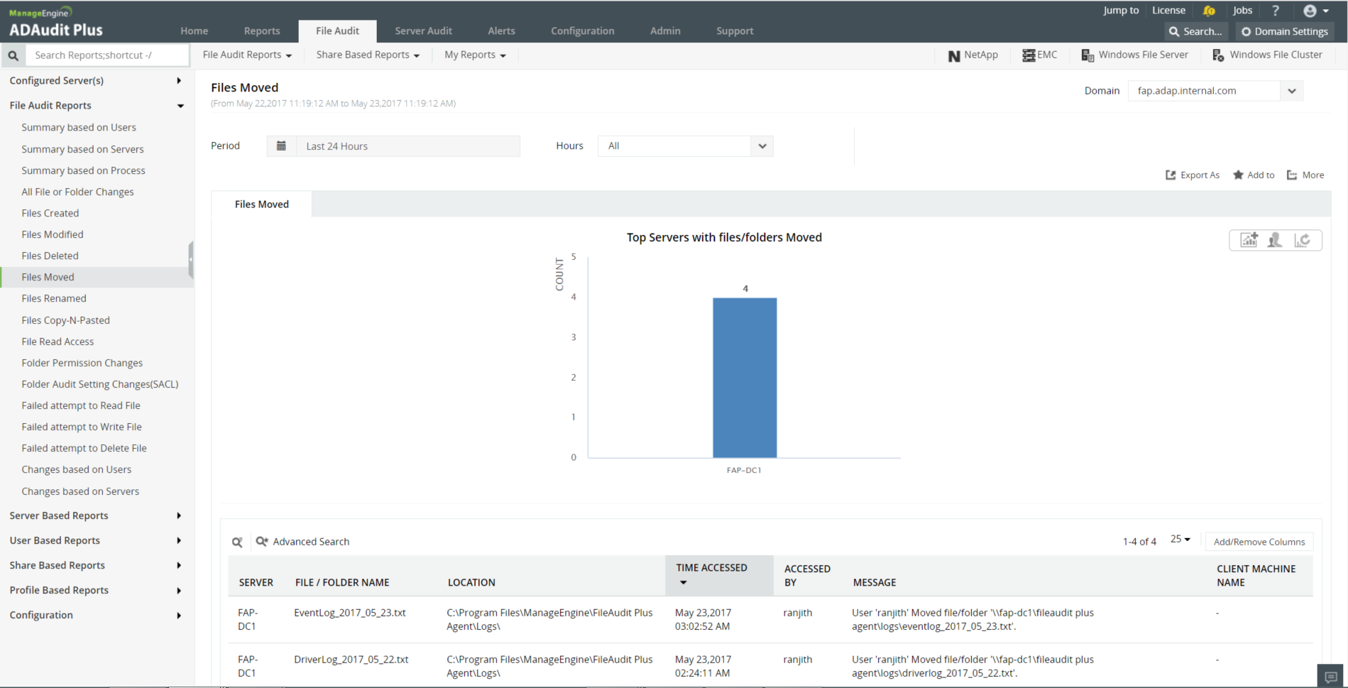 ADAudit Plus offre funzionalità come il controllo delle modifiche, il monitoraggio degli accessi, il monitoraggio dei file, la creazione di report di conformità, l'analisi della superficie di attacco, l'automazione delle risposte e il backup e il ripristino per diversi sistemi IT.