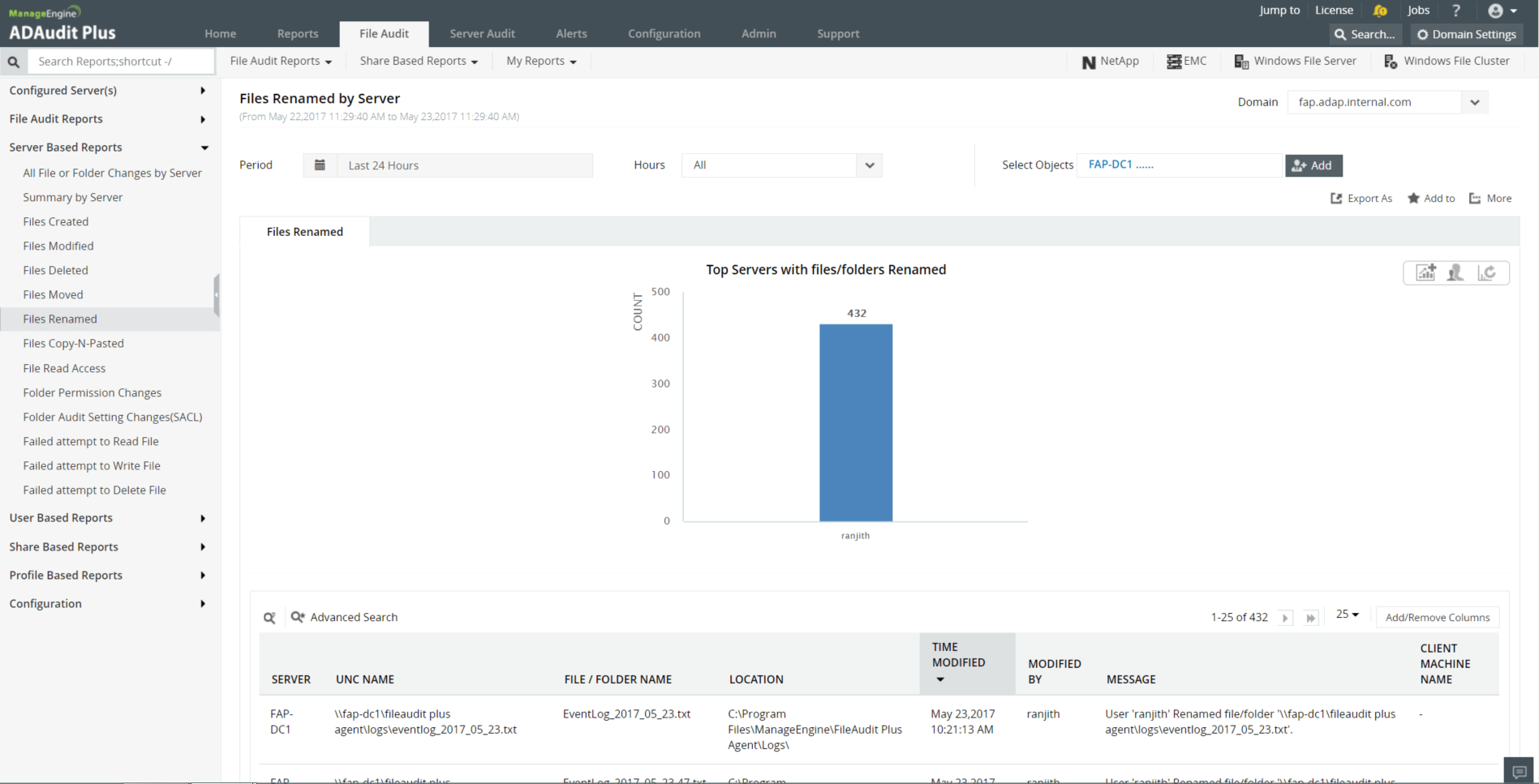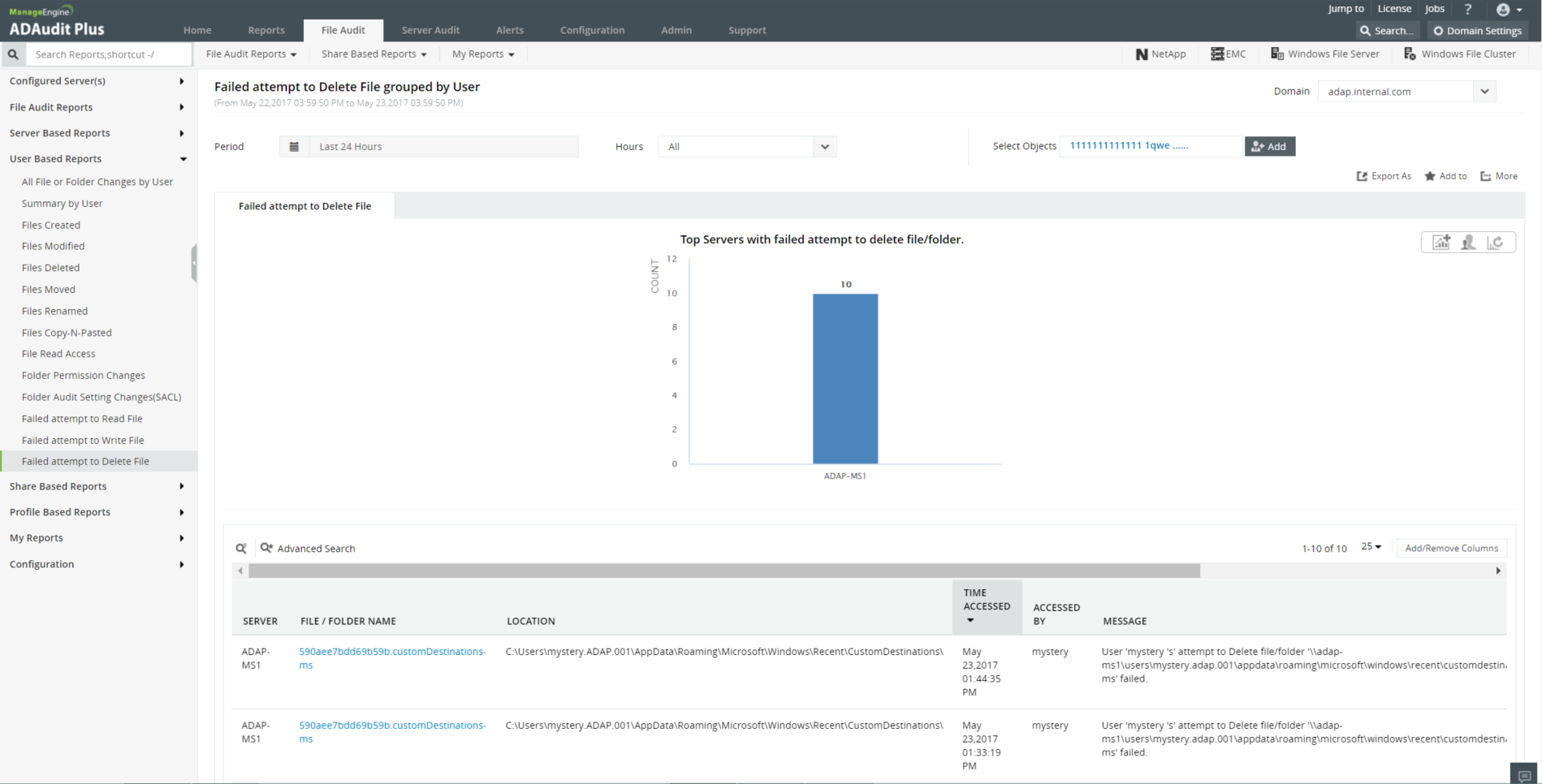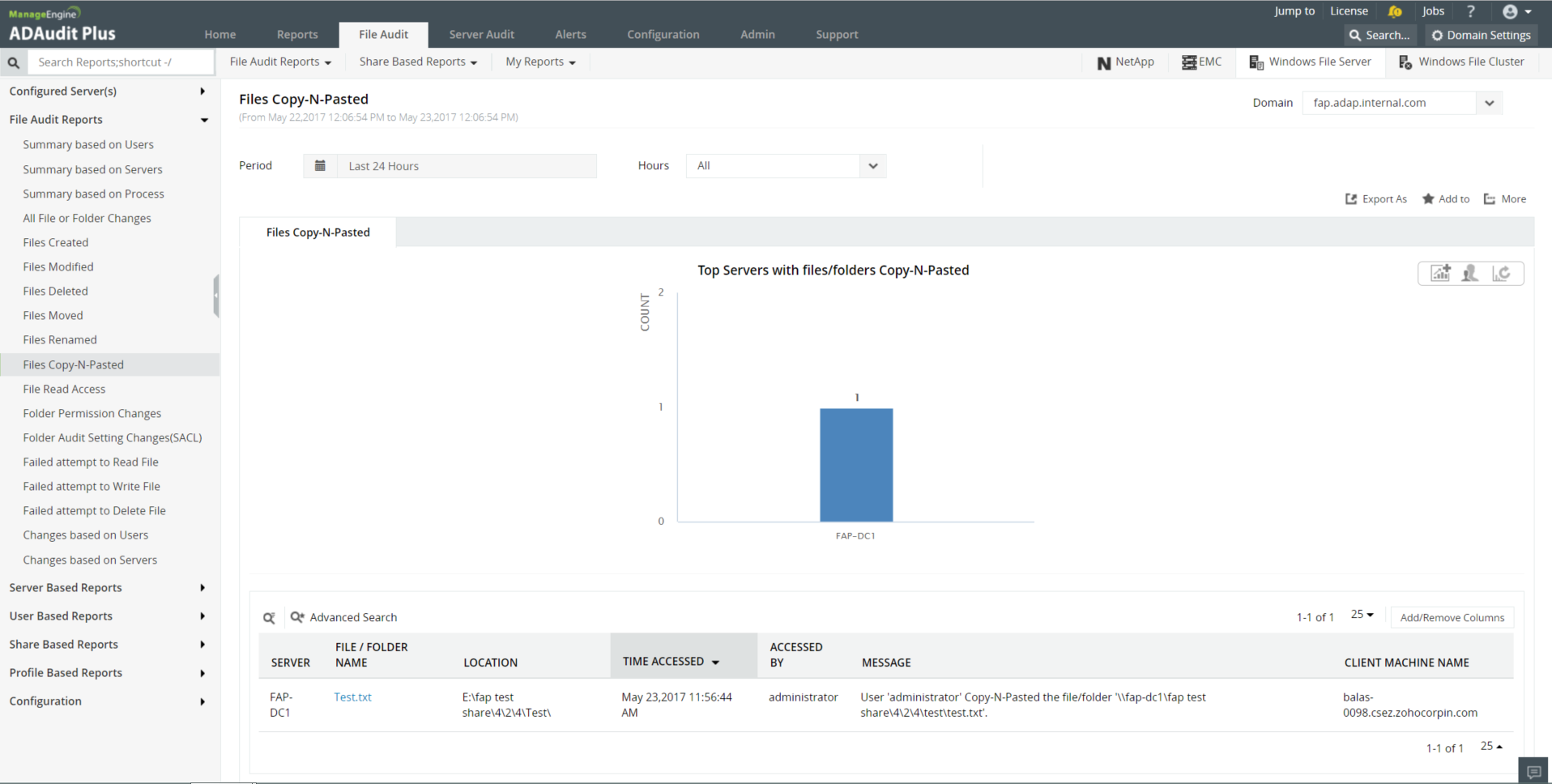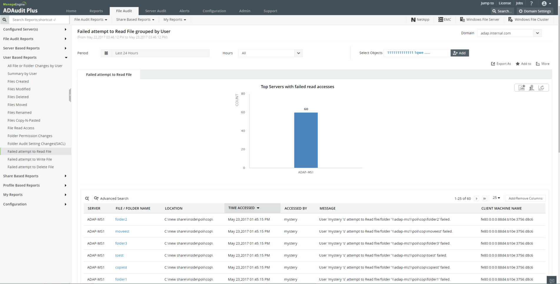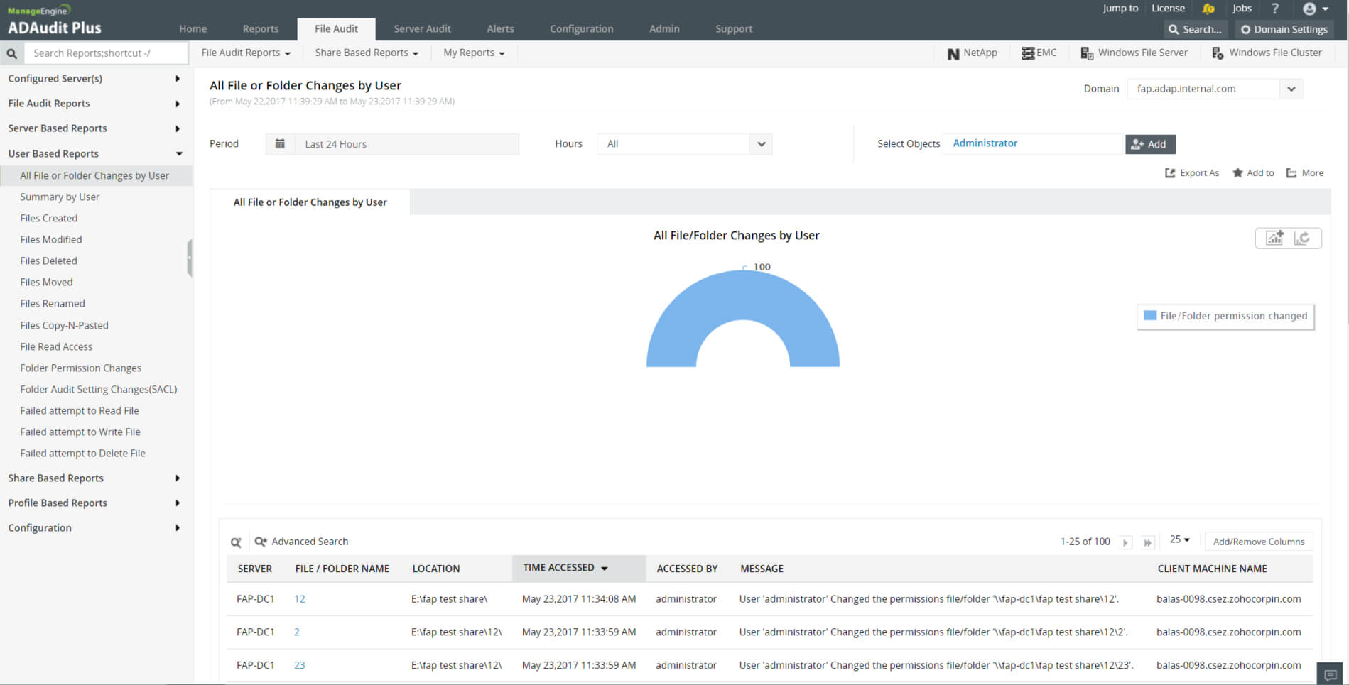 ADAudit Plus offre funzionalità come il controllo delle modifiche, il monitoraggio degli accessi, il monitoraggio dei file, la creazione di report di conformità, l'analisi della superficie di attacco, l'automazione delle risposte e il backup e il ripristino per diversi sistemi IT.