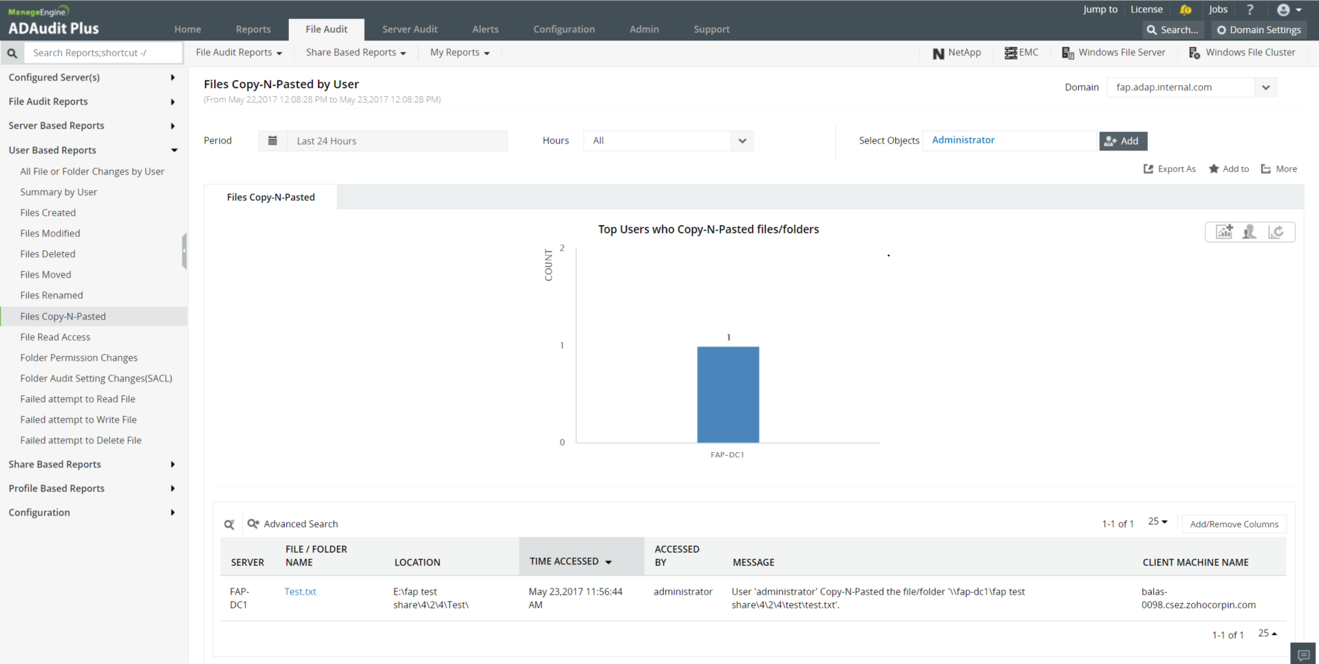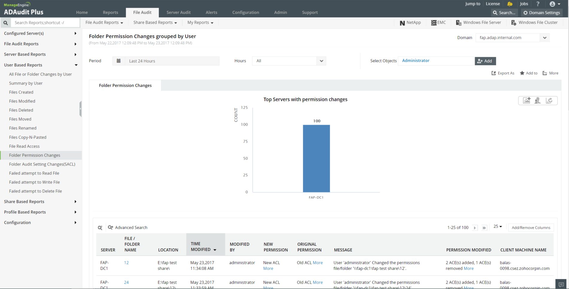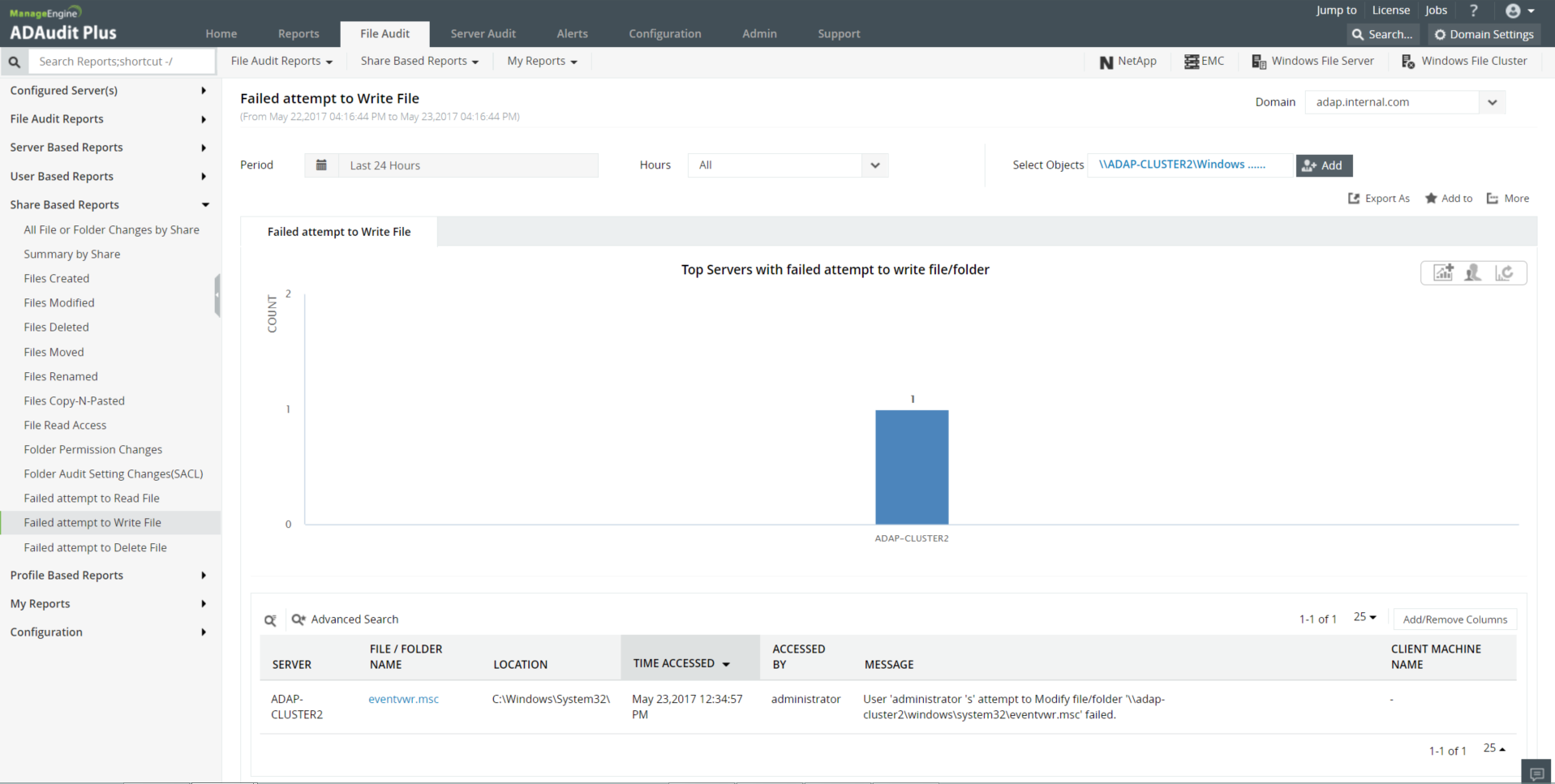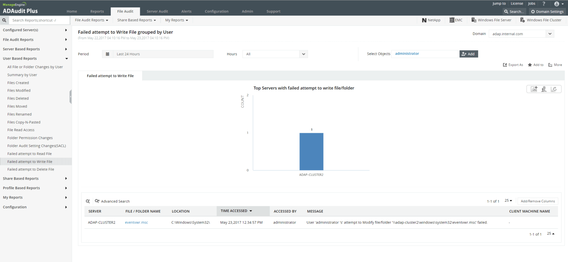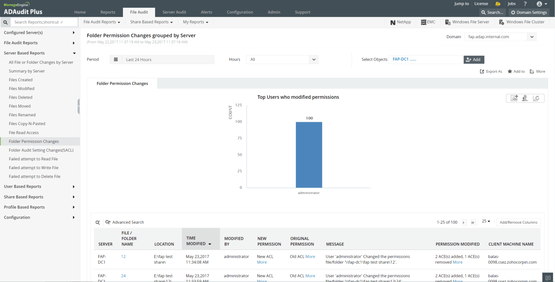 ADAudit Plus offre funzionalità come il controllo delle modifiche, il monitoraggio degli accessi, il monitoraggio dei file, la creazione di report di conformità, l'analisi della superficie di attacco, l'automazione delle risposte e il backup e il ripristino per diversi sistemi IT.