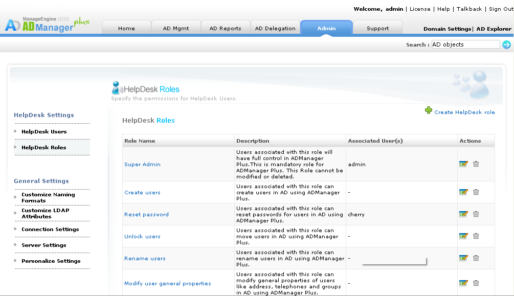 negli ambienti active directory gli amministratori spendono molto tempo non produttivo per intervenire sui ticket correlati a reimpostazione password, sblocco utenti, ridenominazione utenti, spostamento computer/utenti, modifica proprietà generali e così via. Sebbene si tratti di attività semplici, sono operazioni in active directory che richiedono tanto tempo. La delega all'helpdesk di ADManager Plus è una funzione totalmente sicura che consente agli utenti non amministrativi di gestire queste semplici attività in AD senza coinvolgere necessariamente l'amministratore nel processo.