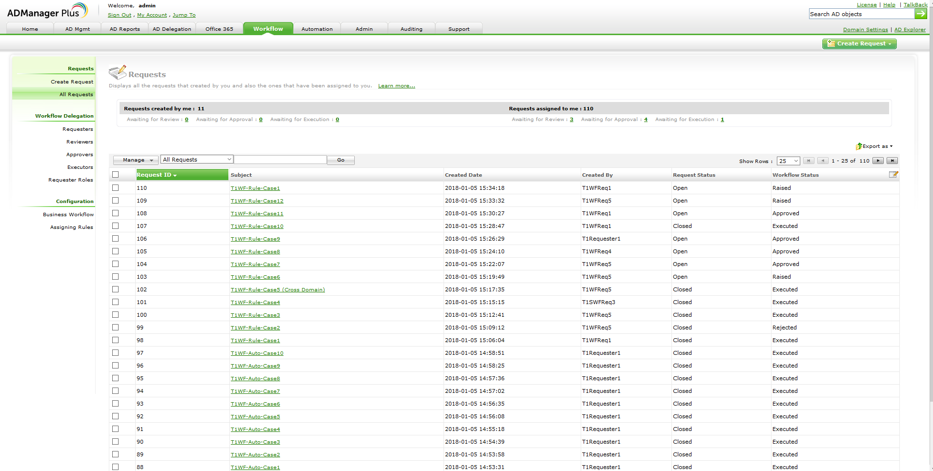 Workflow assomiglia più a un archivio per richieste di attività e ticket per Active Directory, che consente agli amministratori anche di definire il workflow di approvazione per specificare come attività di gestione come eseguire la creazione e la modifica di account, la pulizia di Active Directory e così.