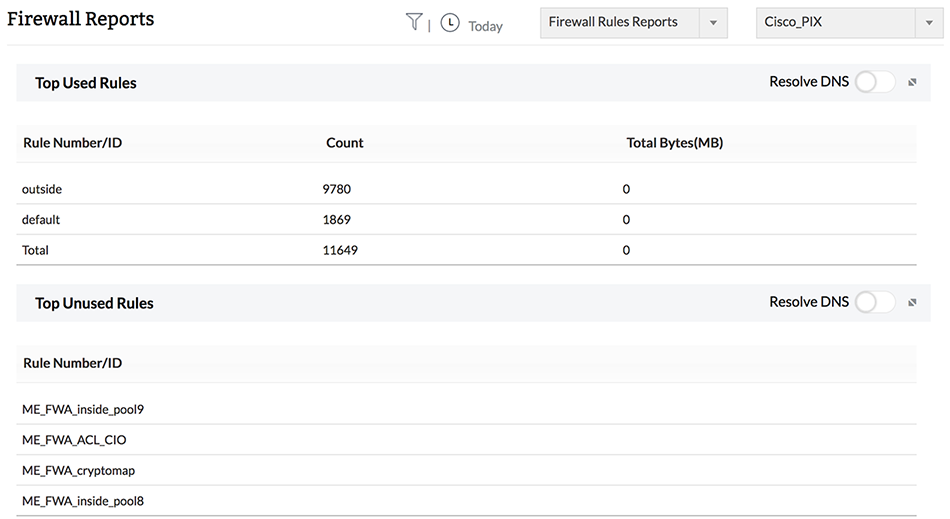OpManager Plus fornisce un modulo di analisi e configurazione dei log senza agenti che aiuta a capire come viene utilizzata la larghezza di banda nella rete. OpManager Plus è indipendente dal produttore e supporta quasi tutti i firewall di rete open source e commerciali, quali ad esempio Check Point, Cisco, Juniper, Fortinet Palo Alto Networks.