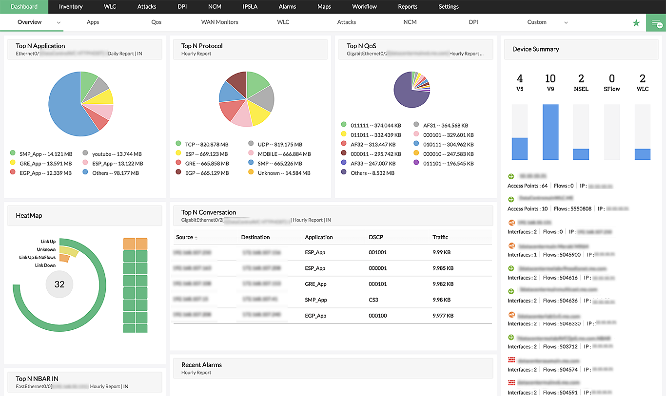 ManageEngine NetFlow Analyzer è un software di analisi del traffico di rete (NTA) end-to-end, che supporta tecnologie di flusso come NetFlow, sFlow, JFlow. Con questo strumento di analisi del traffico di rete (NTA) in tempo reale e passivo, è possibile rilevare le tendenze di utilizzo del traffico, isolare i top talker e ottenere una visione completa di ciò che accade nella rete con ampi tipi di report.