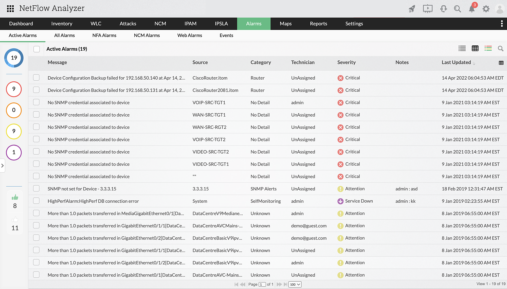 È inoltre possibile identificare facilmente i problemi di sicurezza grazie all'Advanced Security Analytics Module (ASAM) del nostro software di analisi del traffico di rete. È possibile seguire da vicino qualsiasi comportamento insolito sulla rete e il nostro strumento di analisi del traffico di rete classifica il problema come pacchetti TCP malformati, flussi TOS non validi, flussi Src-Dest non validi o altro. Si può anche assegnare una classe di gravità per stabilire la priorità delle azioni da completare.