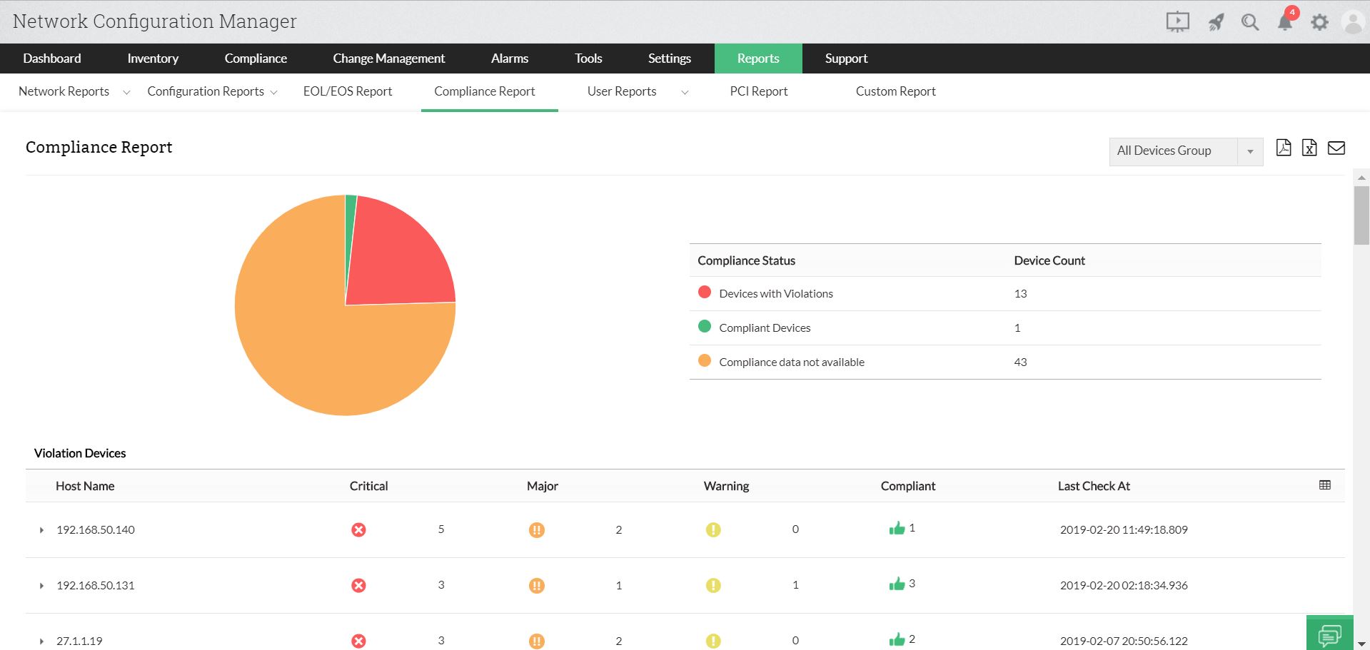 Network Configuration Manager is a multi vendor network configuration and change management (NCCM) solution for switches, routers, firewalls and other network devices. Network Configuration Manager helps automate and take total control of the entire life cycle of device configuration management including configuration backup, change tracking and notifications and more.