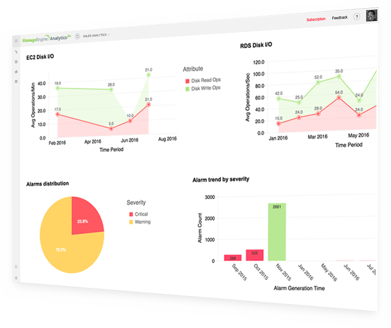 Visually track the availability of all components such as servers, databases, and applications using Analytics Plus.