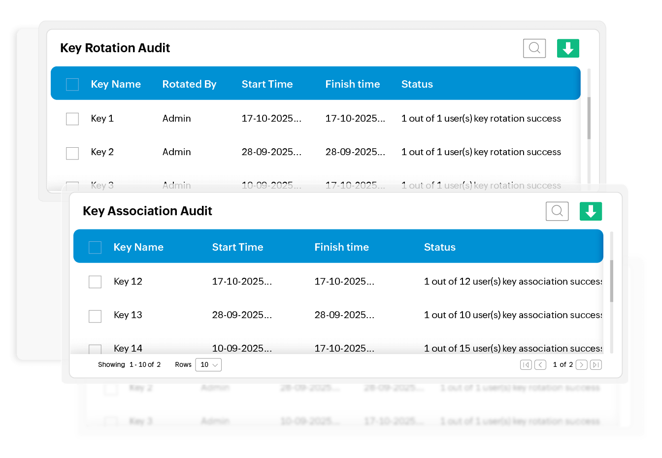 Get complete visibility into key rotation operations, associated resources, when changes took place, which users performed them, and more with Key Manager Plus' comprehensive SSH audits and reports.