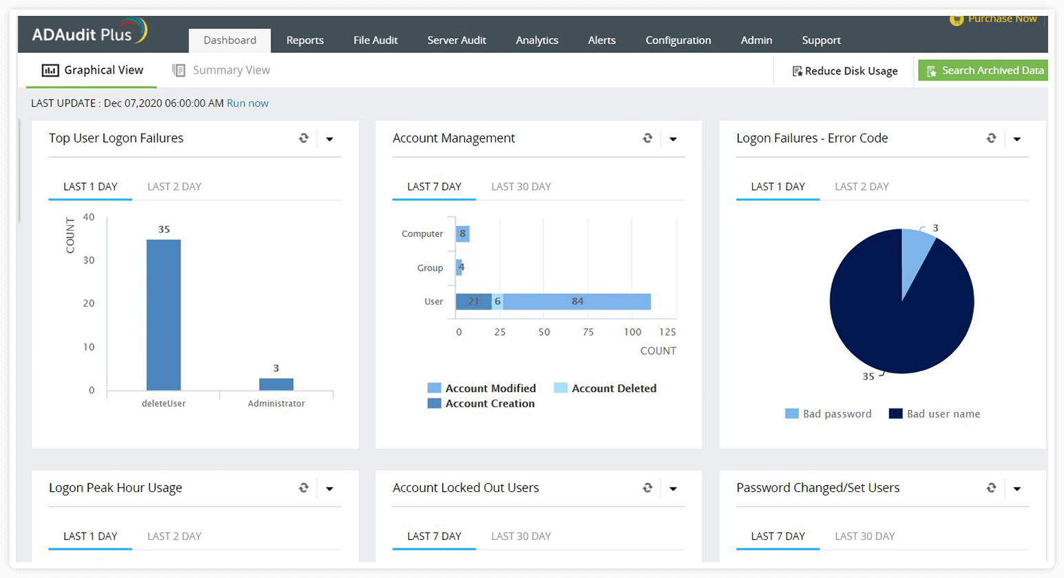 Vigile de cerca los cambios y restablecimientos de contraseña más recientes realizados por los usuarios, y obtenga información instantánea sobre aquellos que cambian con frecuencia sus contraseñas.