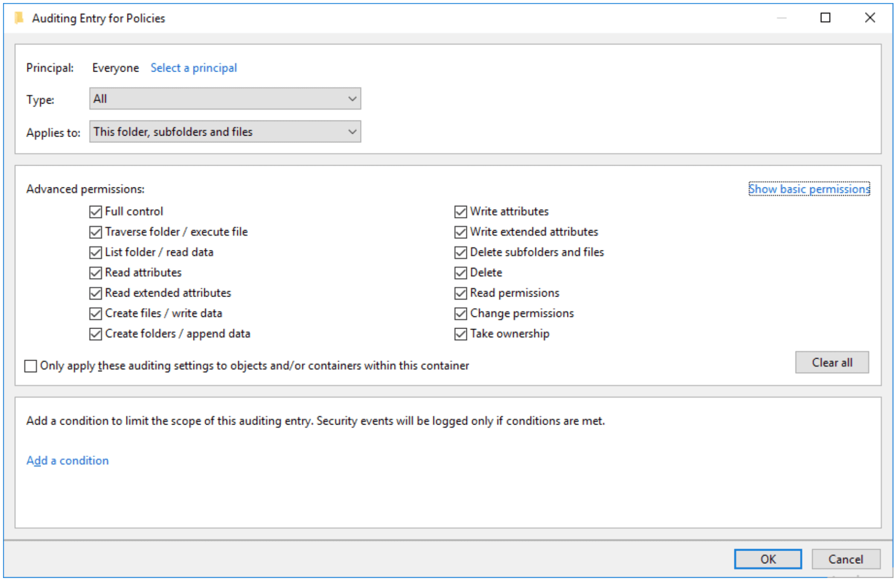 Todos los archivos de directiva de grupo se almacenan en la carpeta SYSVOL del controlador de dominio, por lo que para auditar los cambios en la GPO, es necesario auditar esta carpeta. Realice las siguientes acciones en el controlador de dominio:
