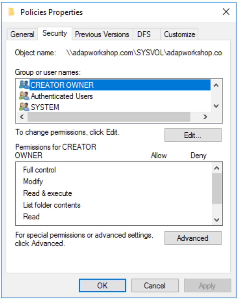 Nota: Si no tiene acceso a un controlador de dominio, acceda a la carpeta SYSVOL a través del recurso compartido de red.