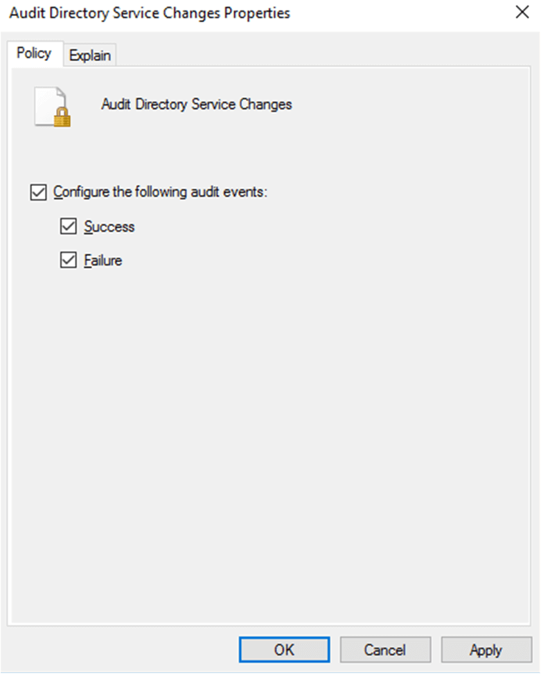 Una vez habilitada esta directiva, los eventos se registran en el registro de seguridad del controlador de dominio cada vez que se modifica un objeto de directiva de grupo.