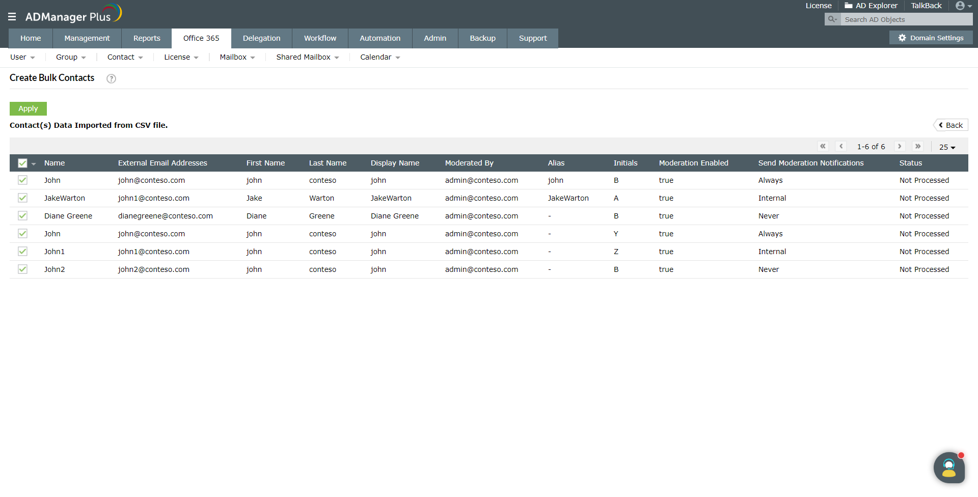 Gestión de contactos de Microsoft Office 365 con ManageEngine ADManager Plus