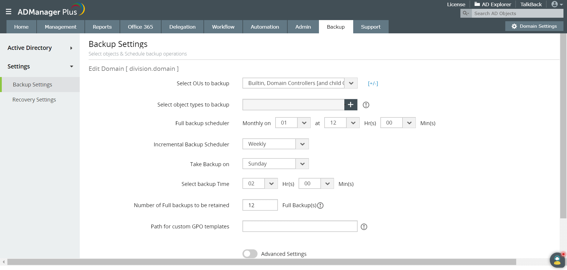 ADManager Plus le permite realizar lo mismo con unos pocos clics desde su consola GUI basada en la web. También le permite restaurar objetos de AD incluso después de su marcador de exclusión.