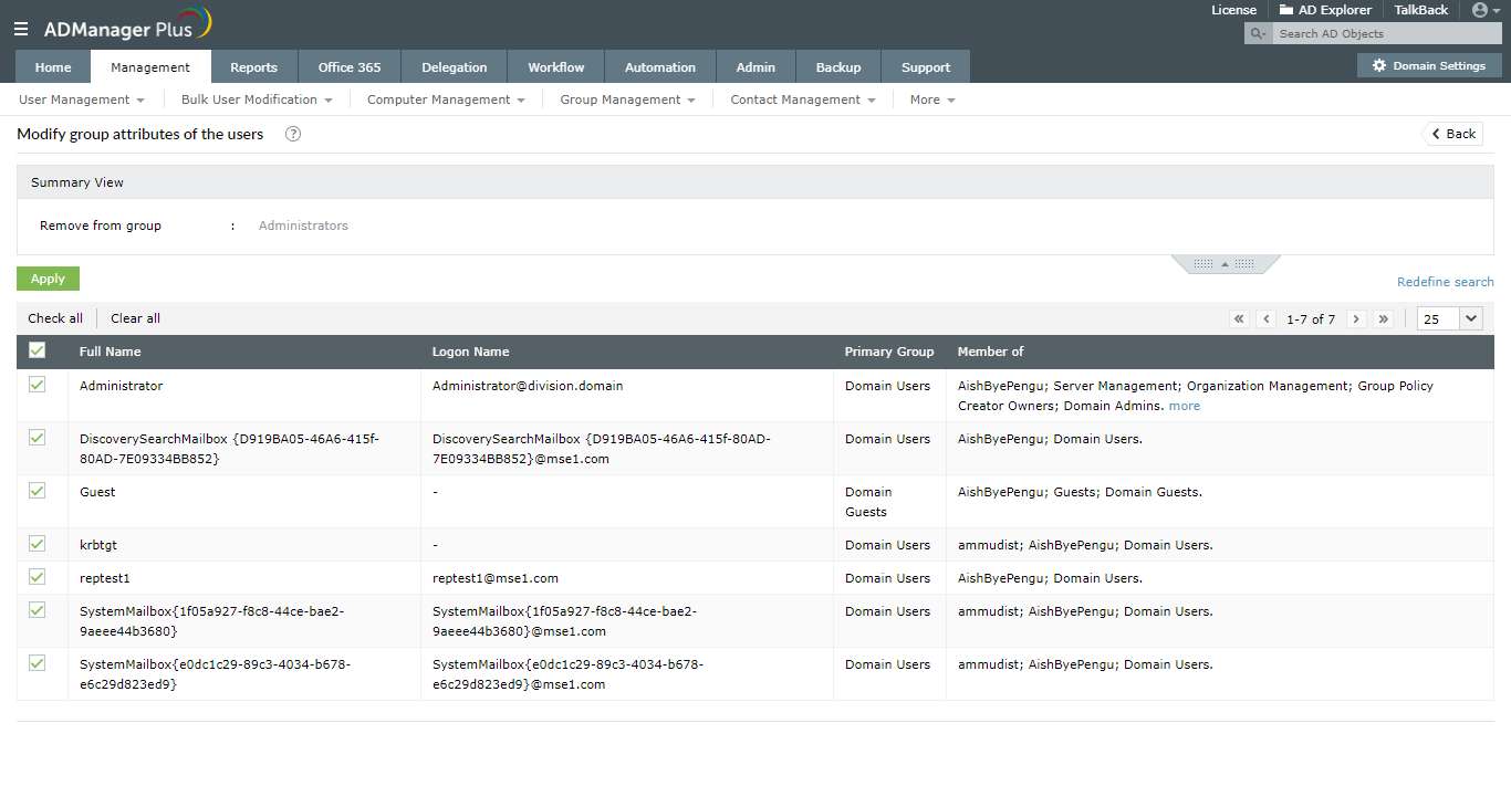 - Seleccione los grupos de los que se deben eliminar los usuarios y haga clic en Apply.