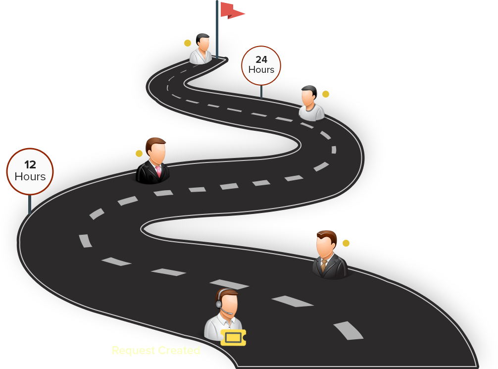 Supervise visualmente cada modificación que se dé para una solicitud, desde el tiempo en que ingresó a su sistema hasta que se resolvió. Analice esta línea de tiempo para entender cómo cada modificación impacta sus SLA y vea cómo puede mejorar los porcentajes de SLA al reducir las transiciones innecesarias de las solicitudes.