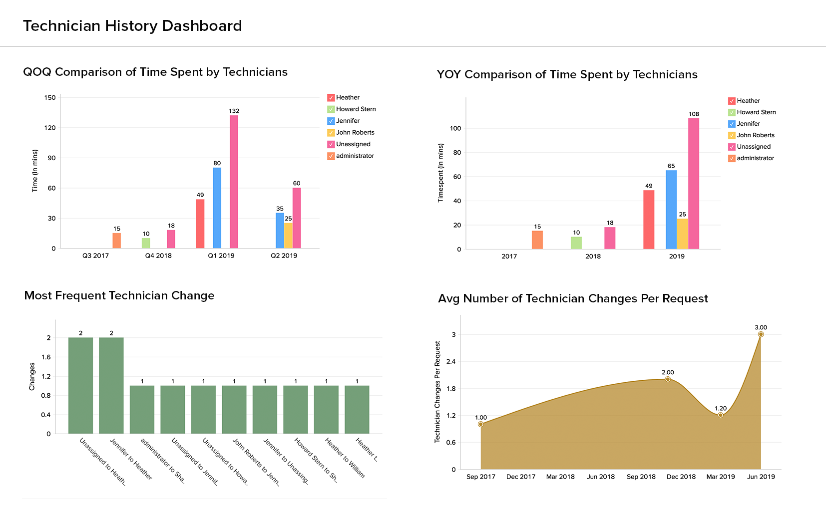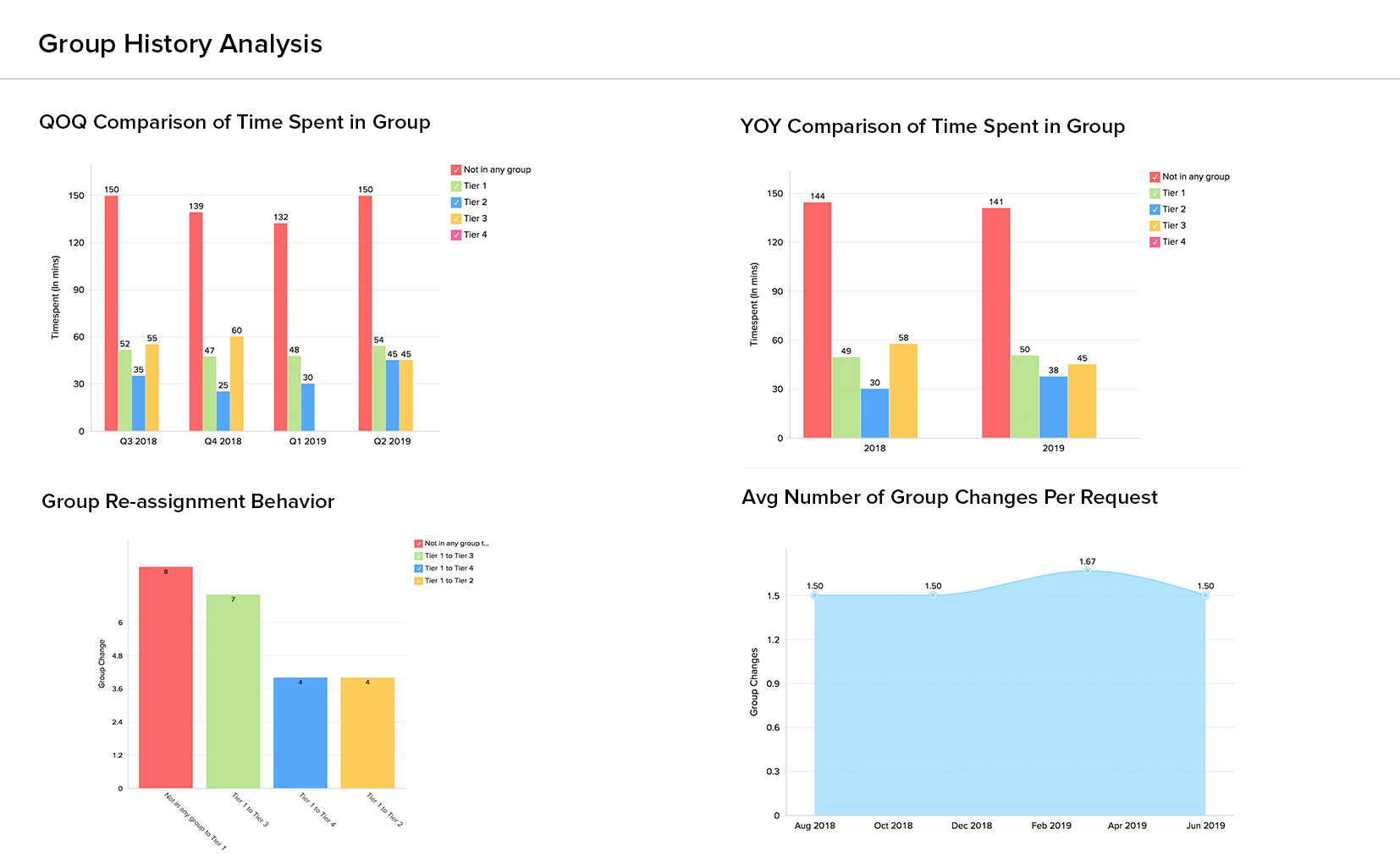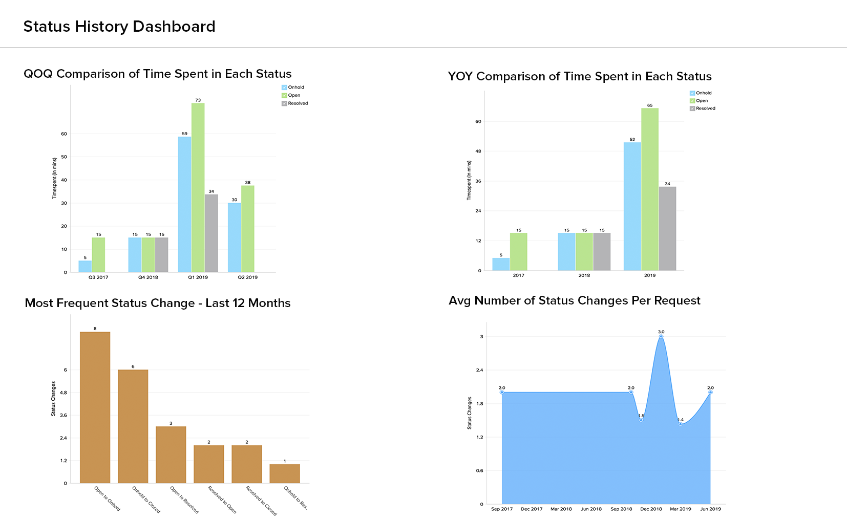 Mire mediciones clave de transacciones como el número de transacciones de estado por solicitud o el tiempo promedio de manejo en varias etapas, y use esta información para medir la eficiencia general de su mesa de ayuda.