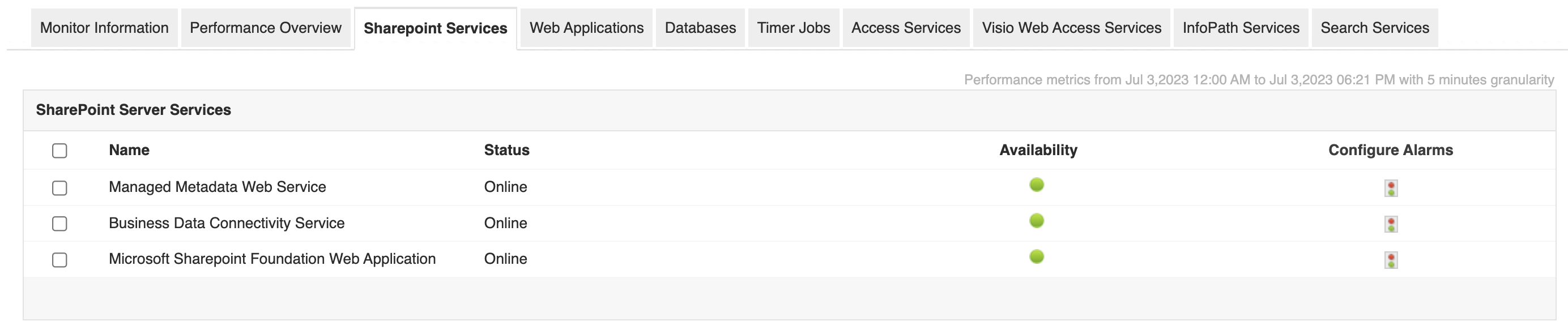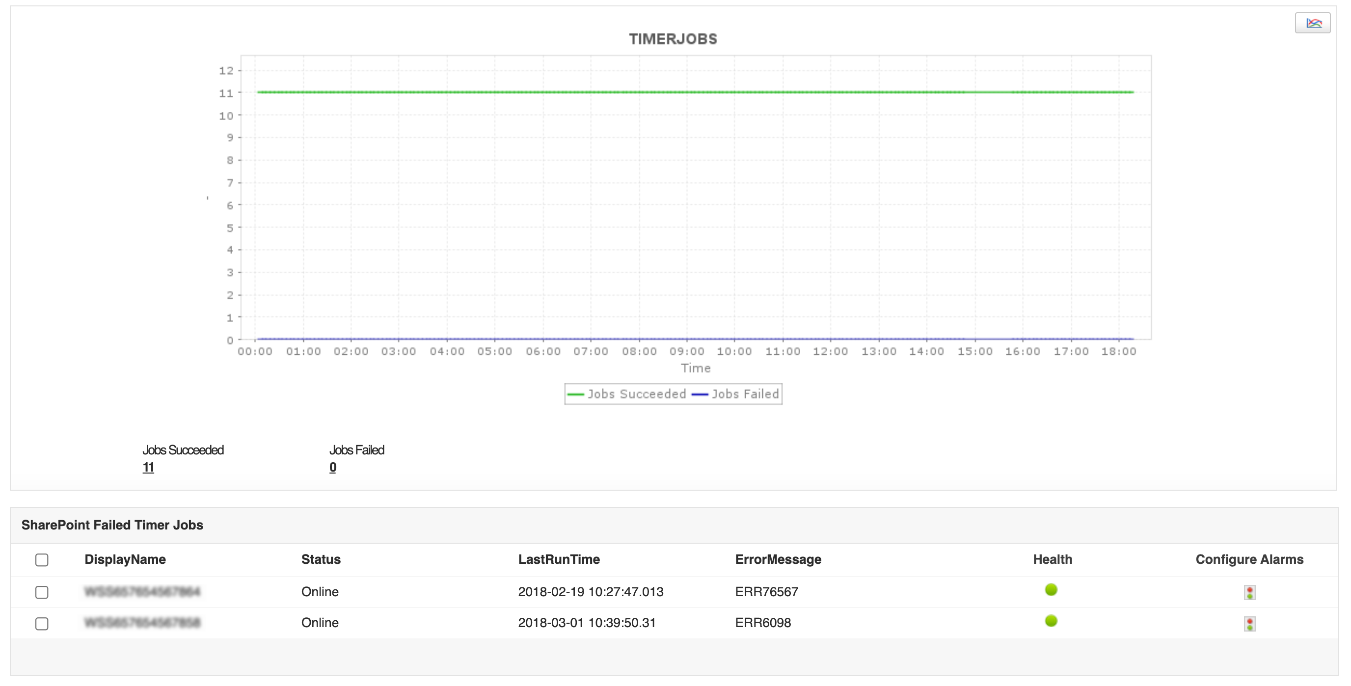 Es una buena práctica utilizar herramientas de monitoreo de SharePoint como Applications Manager para mantener un control sobre la eficiencia de su aplicación determinando la frecuencia de fallos o errores en los trabajos basándose en métricas de rendimiento clave de SharePoint como el último tiempo de ejecución, el recuento de trabajos con temporizador fallidos y los estados de los mensajes de error.