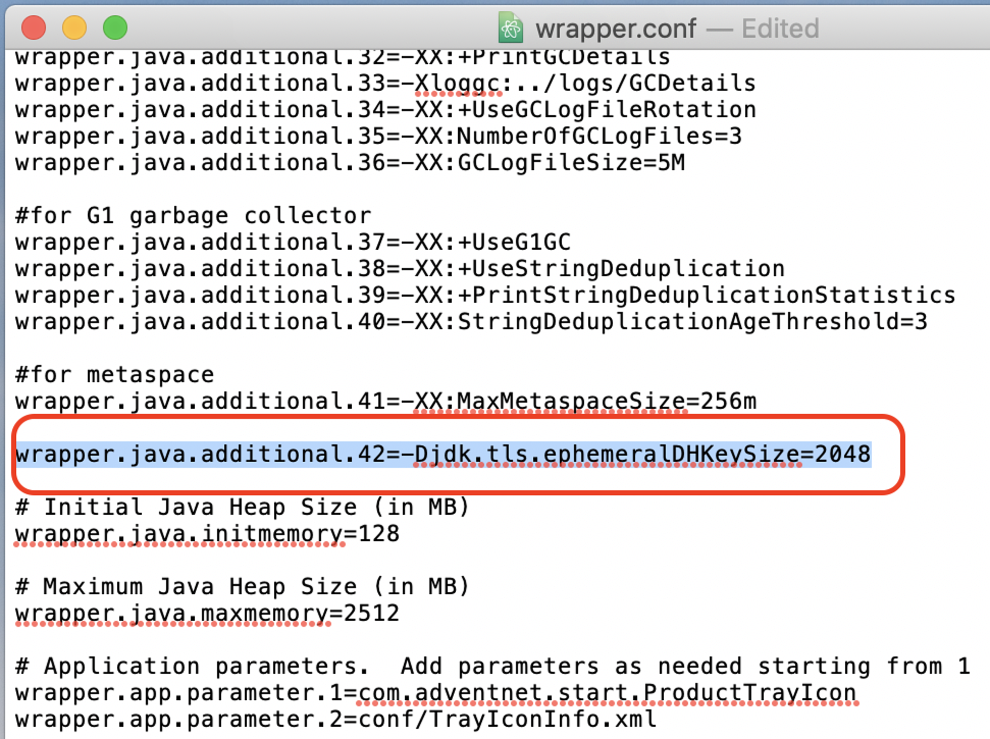 Step 2: Add the line marked in the screenshot below in the wrapper.conf file.