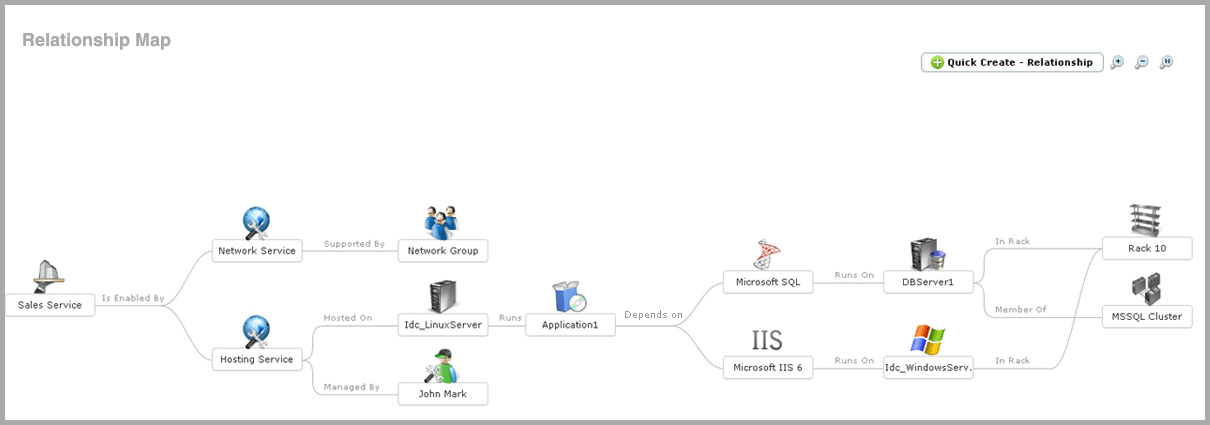 Establecer relaciones con otros activos es un valor añadido útil para el seguimiento de los activos de TI. La CMDB le permite comprender bien las distintas relaciones de un activo en su infraestructura de TI. Esto resulta útil cuando está solucionando un incidente o un problema. Conocer las relaciones es la clave para realizar un análisis de causa raíz de un problema y rectificarlo de manera eficiente y rápida.