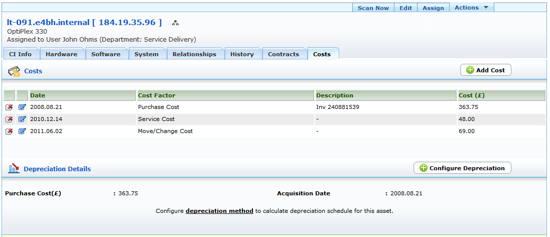 Obtenga una imagen clara de los activos que posee, los detalles de propiedad y su historial. AssetExplorer mantiene un historial preciso del activo, que incluye el historial de propiedad y los cambios durante el ciclo de vida del activo. Los costos de soporte y mantenimiento incurridos por el activo lo ayudan a comprender el costo real del activo (costo total de propiedad). Esto ayuda a pronosticar y tomar decisiones de compra.